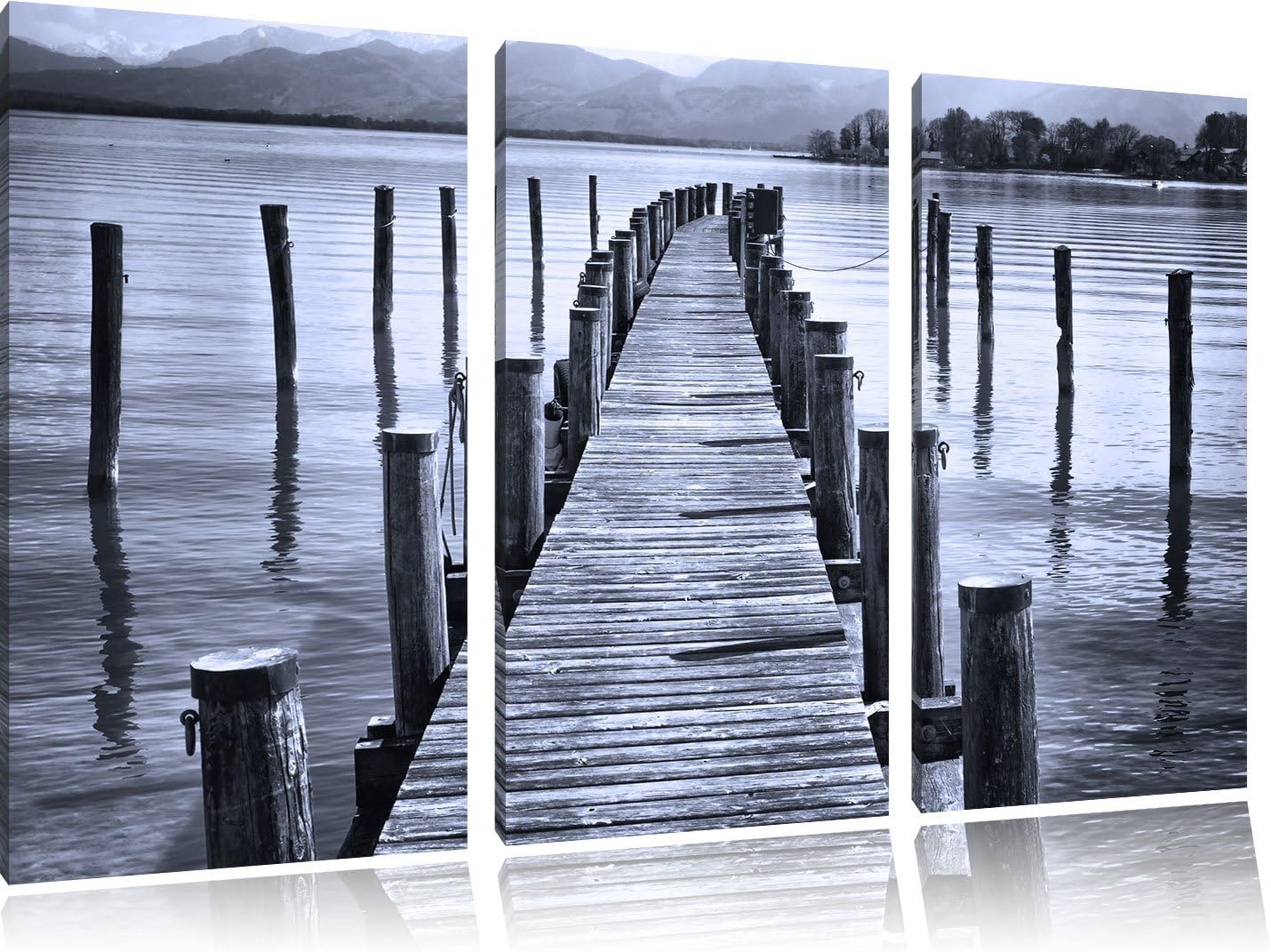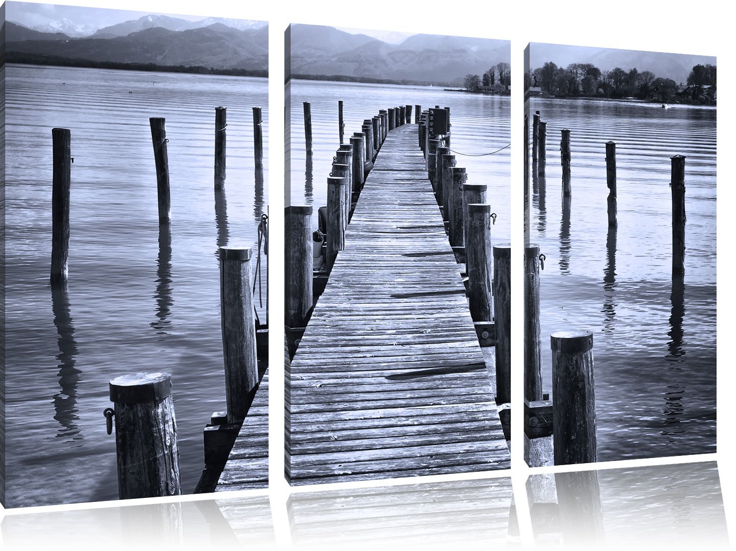 Pixxprint Langer Holzsteg ins Meer als Leinwandbild/Grösse: 3 Teilig (120x80 cm) cm/Wandbild/Kunstdr