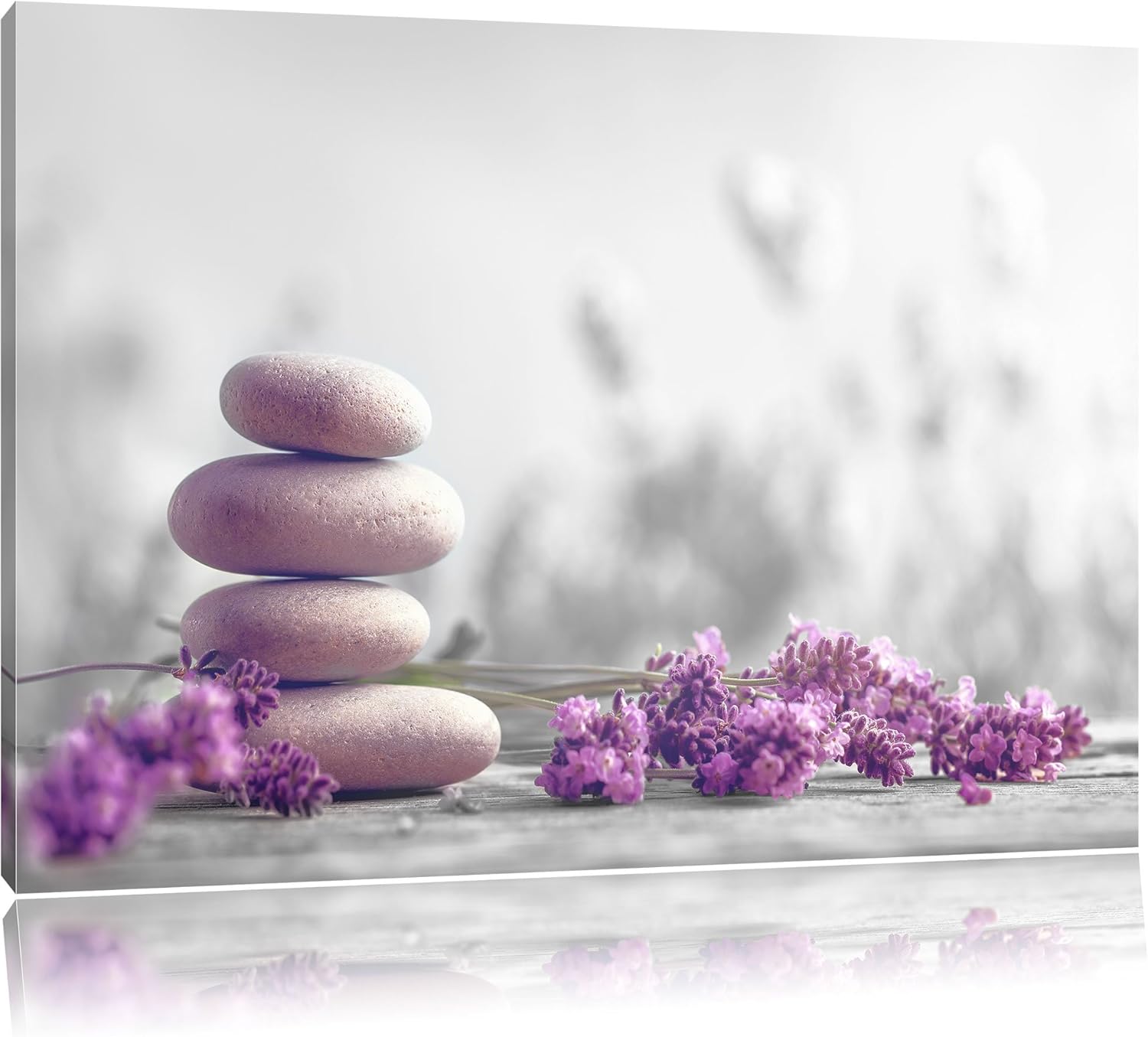 Pixxprint Lavendel Spa-Stillleben B&W Detail, Format: 100x70 auf Leinwand, 100x70