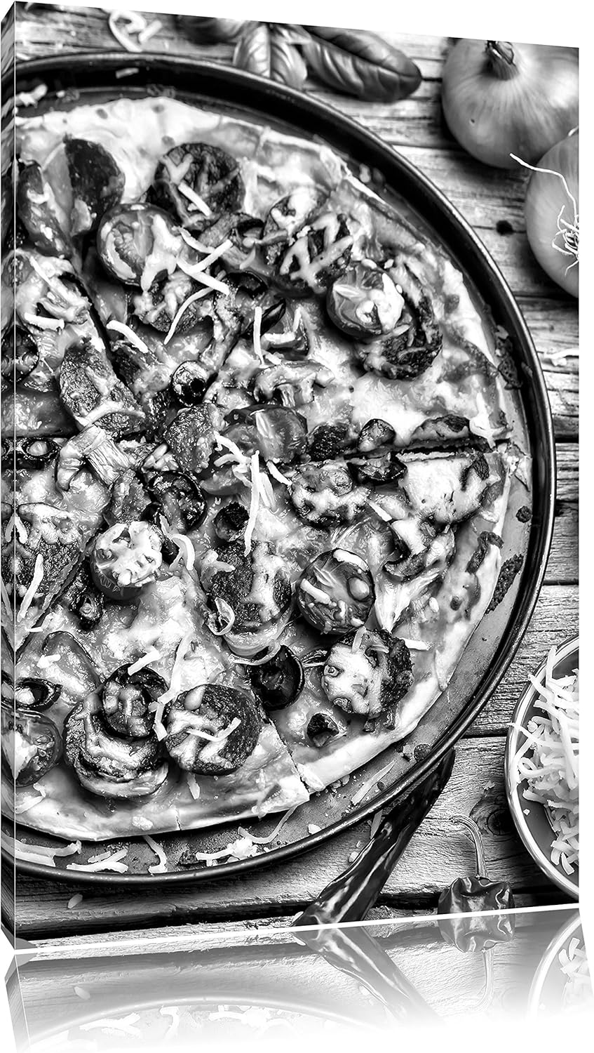 Pixxprint Leckere Pizza auf Holztisch / 100x70cm Leinwandbild bespannt auf Holzrahmen/Wandbild Kunst