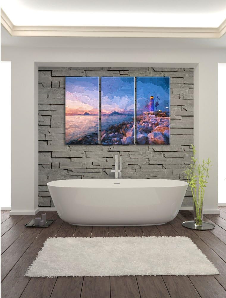 Pixxprint Leuchtturm als Leinwandbild/Grösse: 3 Teilig (120x80) cm/Wandbild/Kunstdruck/fertig bespan
