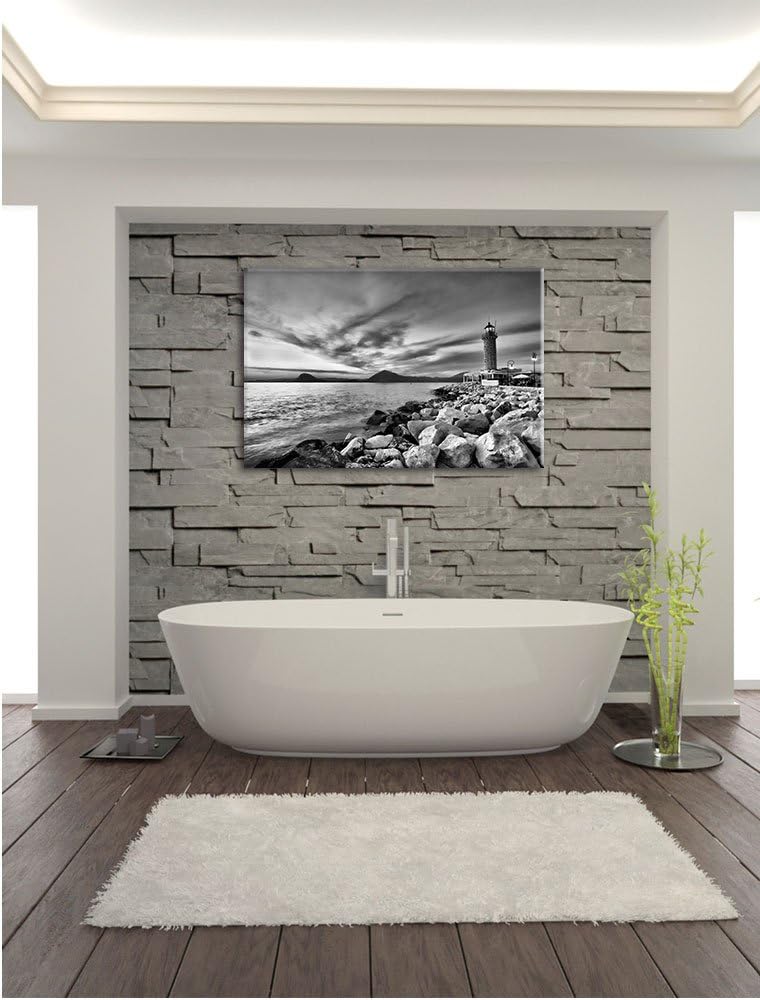 Pixxprint Leuchtturm bei Ebbe als Leinwandbild/Grösse: 100x70 cm/Wandbild/Kunstdruck/fertig bespannt