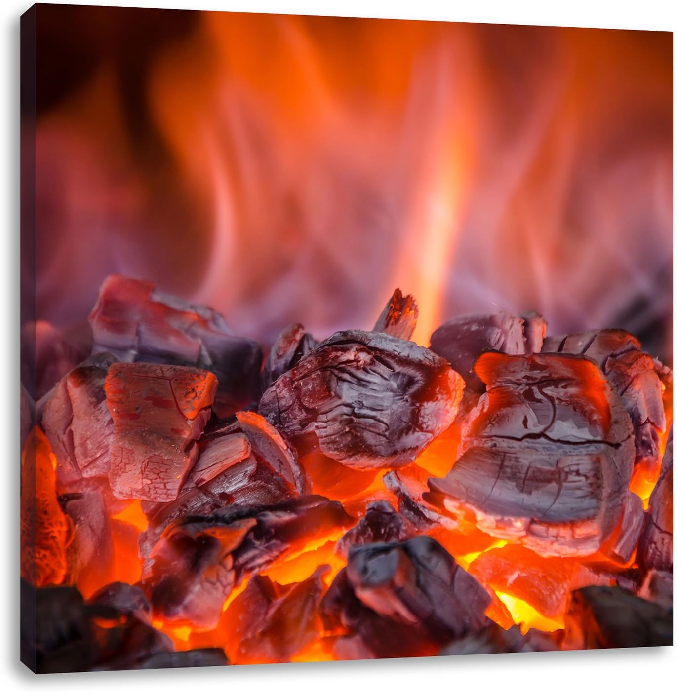 Pixxprint Loderndes Feuer, Format: 70x70 auf Leinwand, XXL riesige Bilder fertig gerahmt mit Keilrah