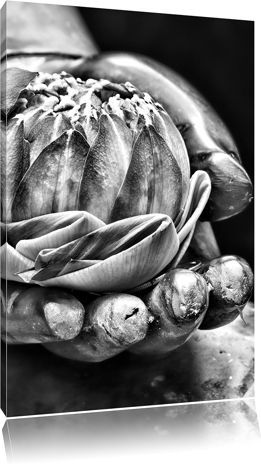 Pixxprint Lotus auf der Hand eines Buddhas als Leinwandbild/Grösse: 100x70 / Wandbild/Kunstdruck/fer