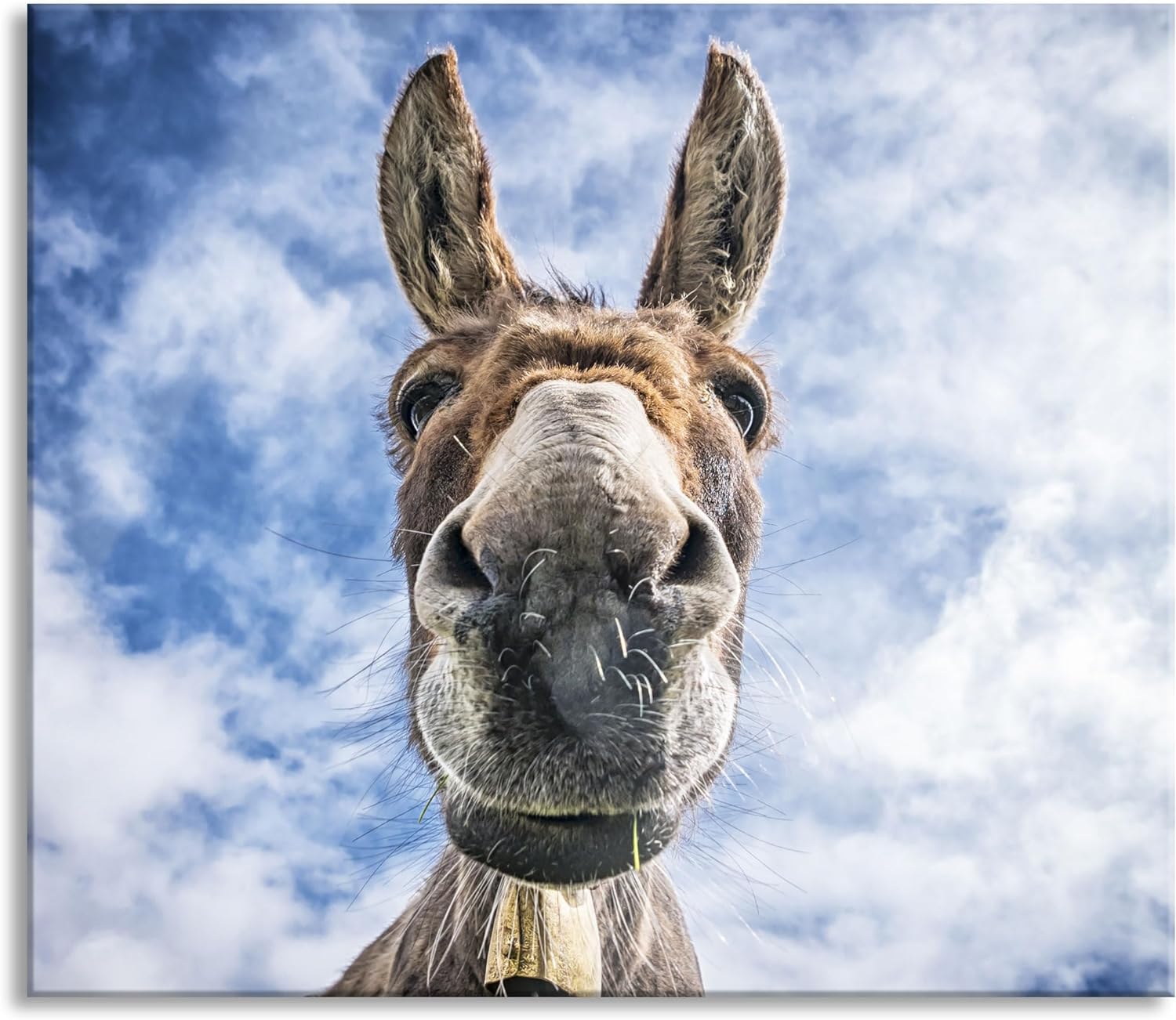 Lustiger Esel Herdabdeckplatte & Spritzschutz aus Echtglas | Für Herd-Kochfelder | 60x52 cm