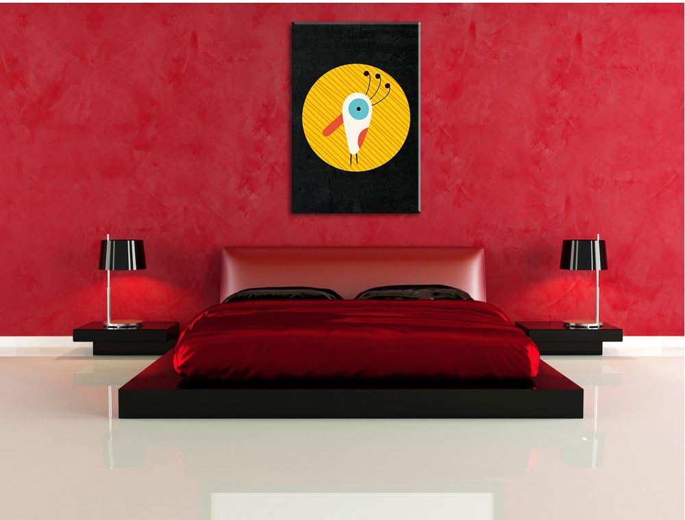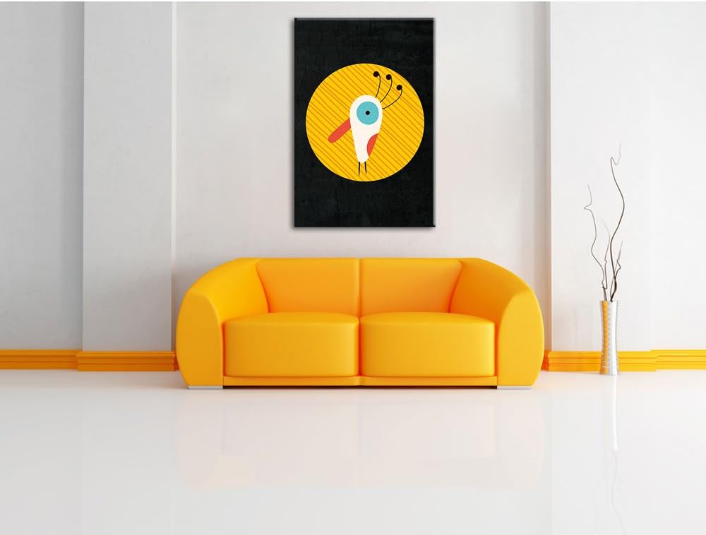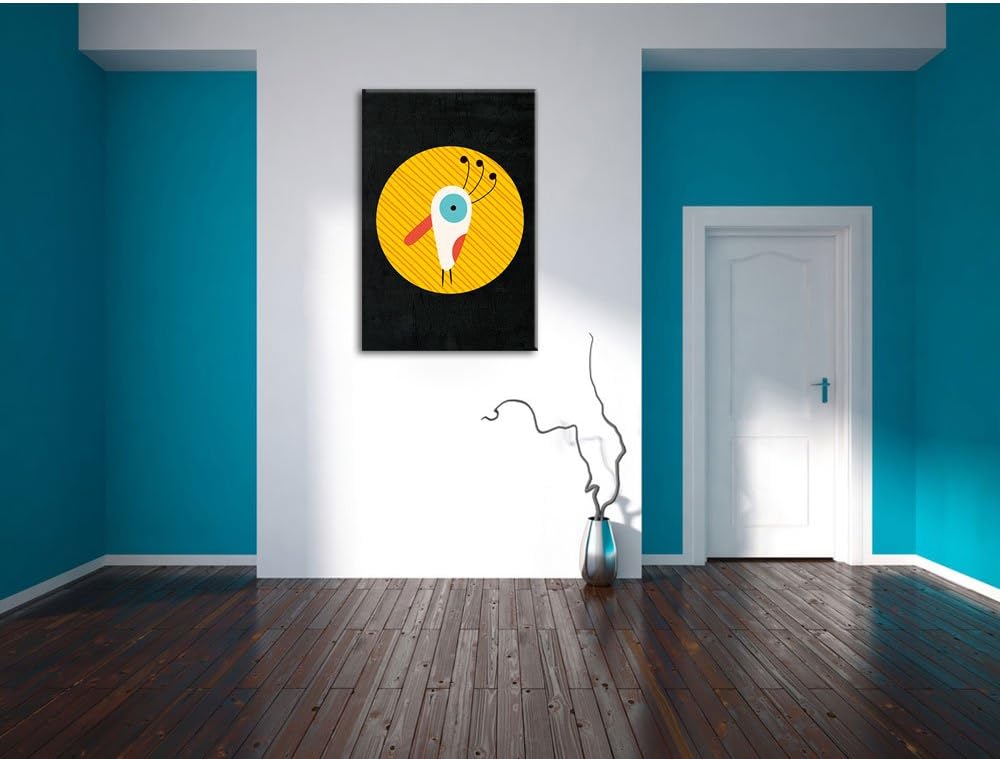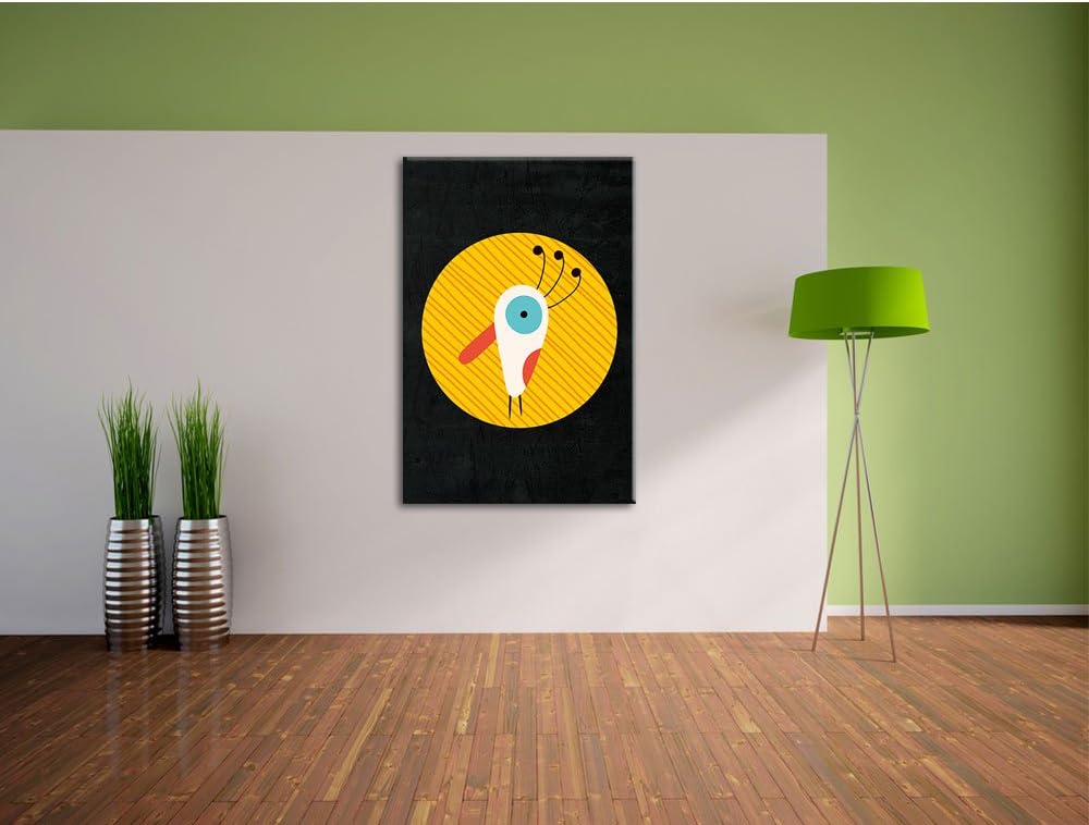 Pixxprint Lustiger Vogel mit gestreiftem Hintergrund schwarz, Format: 70x100 auf hochkantiges Leinwa