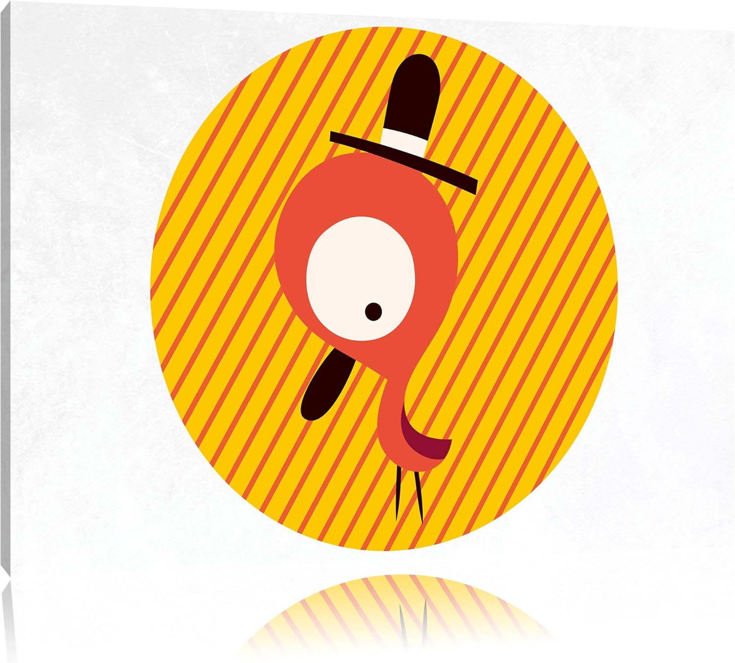 Pixxprint Lustiger Vogel mit Hut und gestreiftem Hintergrund weiss, Format: 100x70 auf Leinwand, XXL