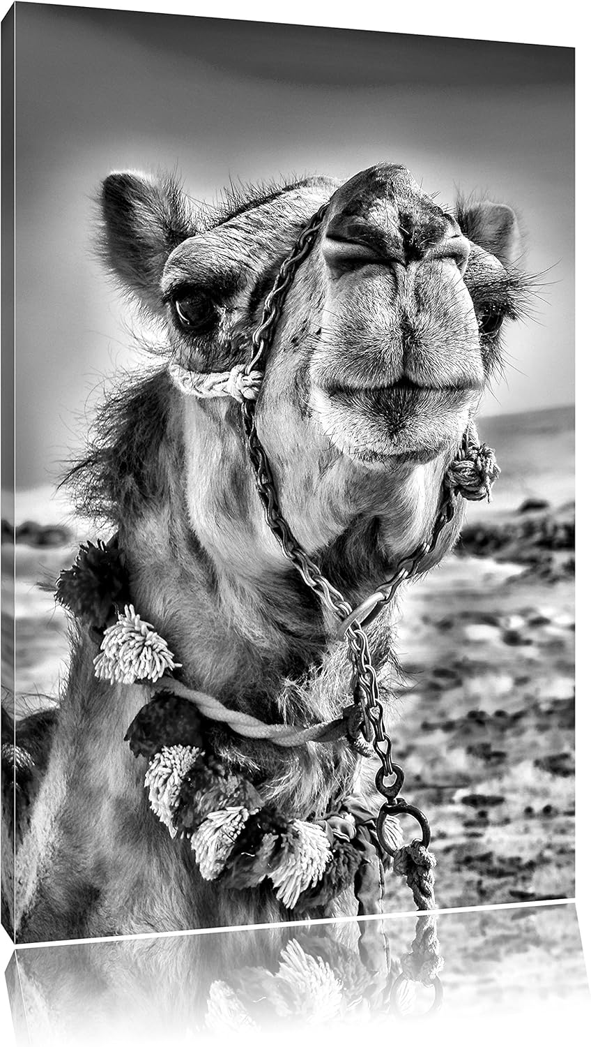 Pixxprint Lustiges Kamel in Wüste als Leinwandbild | Grösse: 100x70 | Wandbild| Kunstdruck | fertig