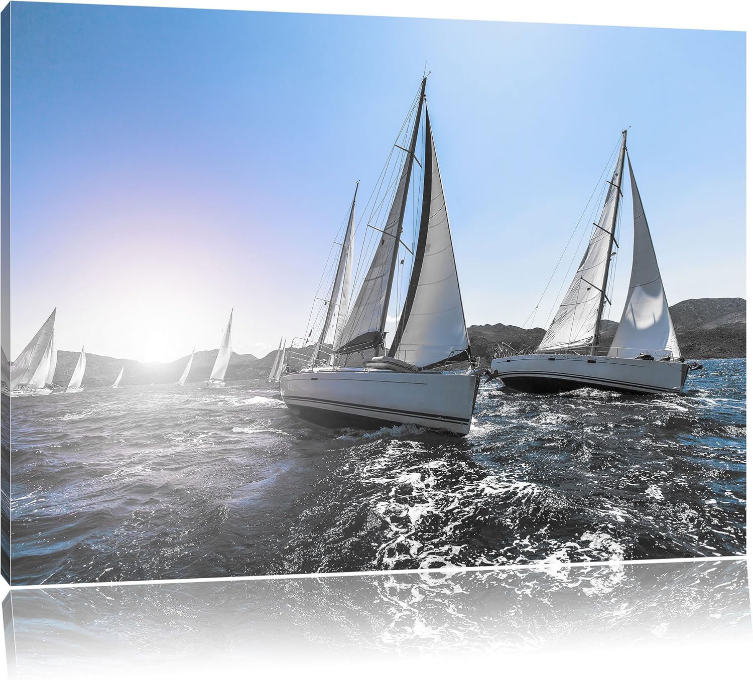 Pixxprint Luxusyachten bei Segelregatta als Leinwandbild | Grösse: 100x70 cm | Wandbild | Kunstdruck