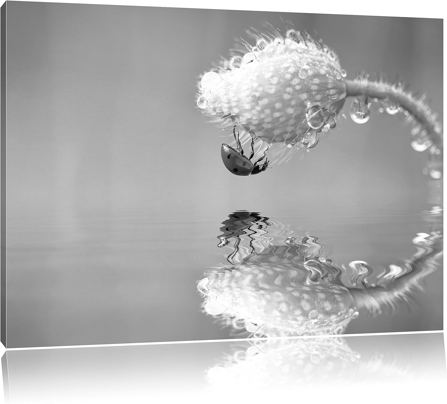 Pixxprint Marienkäfer Mohnblume / 100x70cm Leinwandbild bespannt auf Holzrahmen/Wandbild Kunstdruck