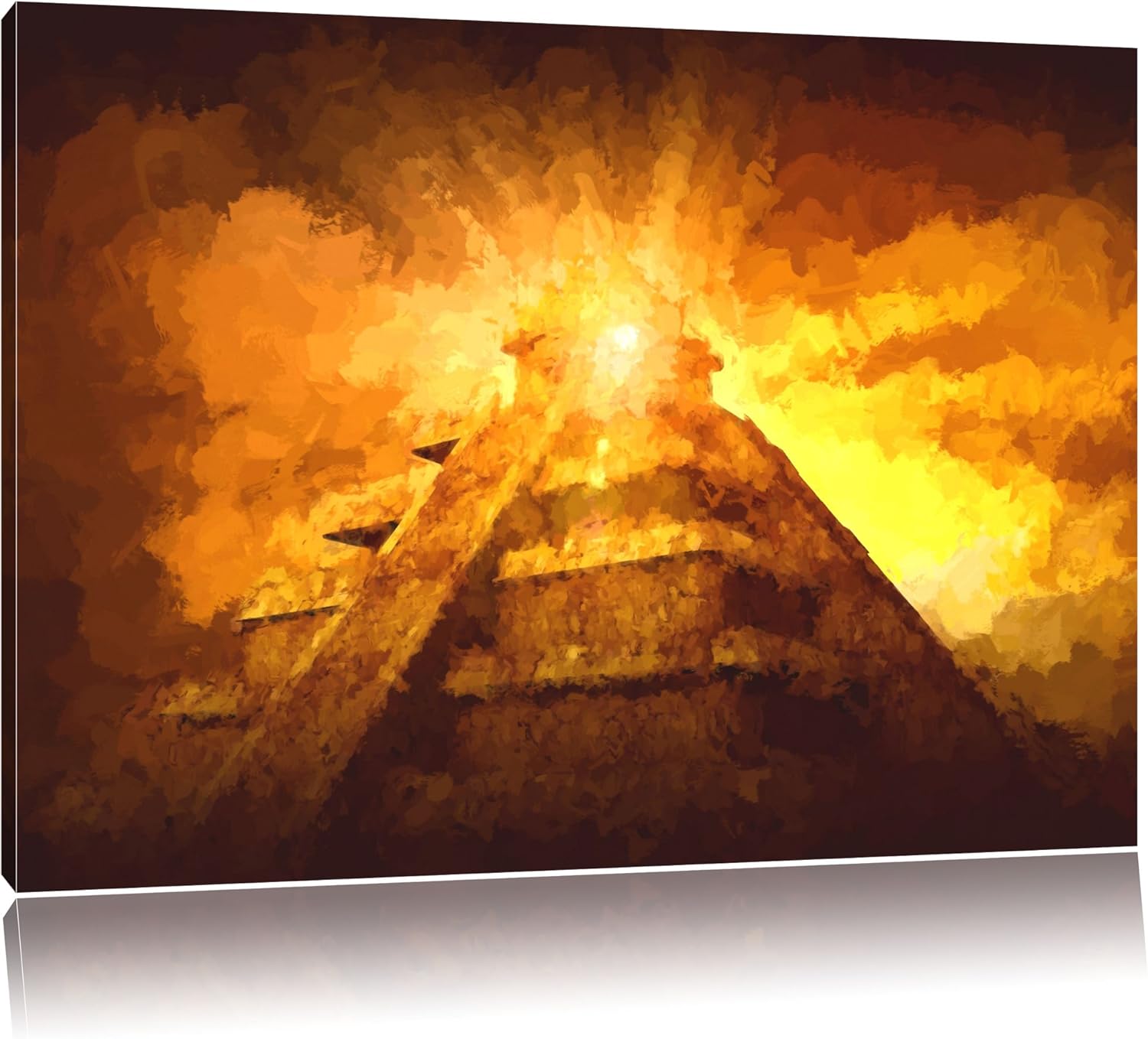 Pixxprint Maya Pyramide mit Sonnenuntergang als Leinwandbild/Grösse: 100x70 cm/Wandbild/Kunstdruck/f