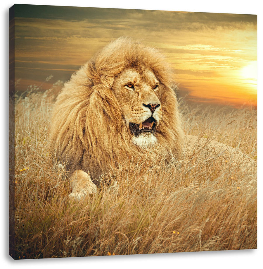 Pixxprint mächtiger Löwe, Format: 70x70 auf Leinwand, XXL riesige Bilder fertig gerahmt mit Keilrahm