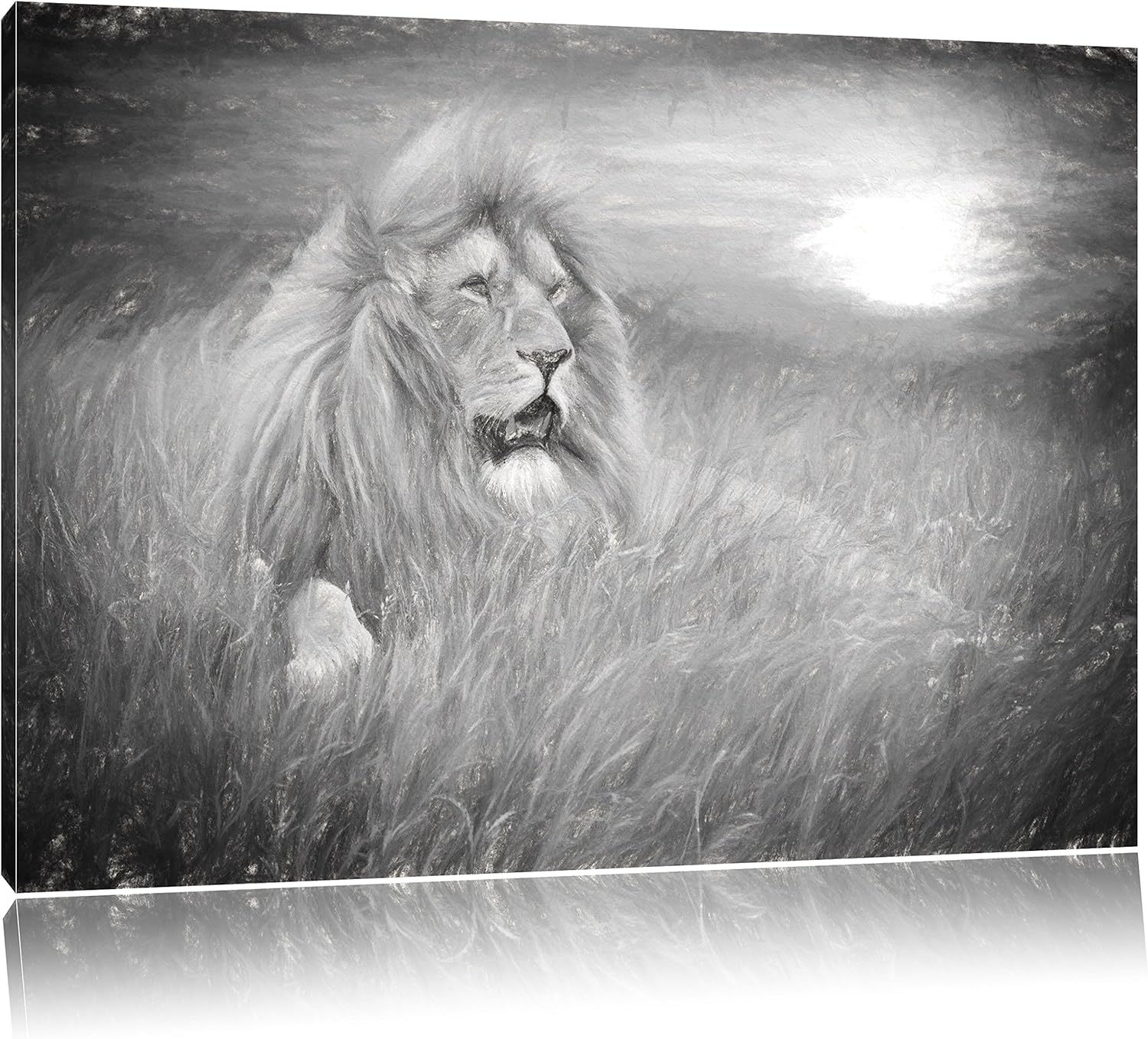 Pixxprint mächtiger Löwe Kunst als Leinwandbild/Grösse: 100x70 cm/Wandbild/Kunstdruck/fertig bespann
