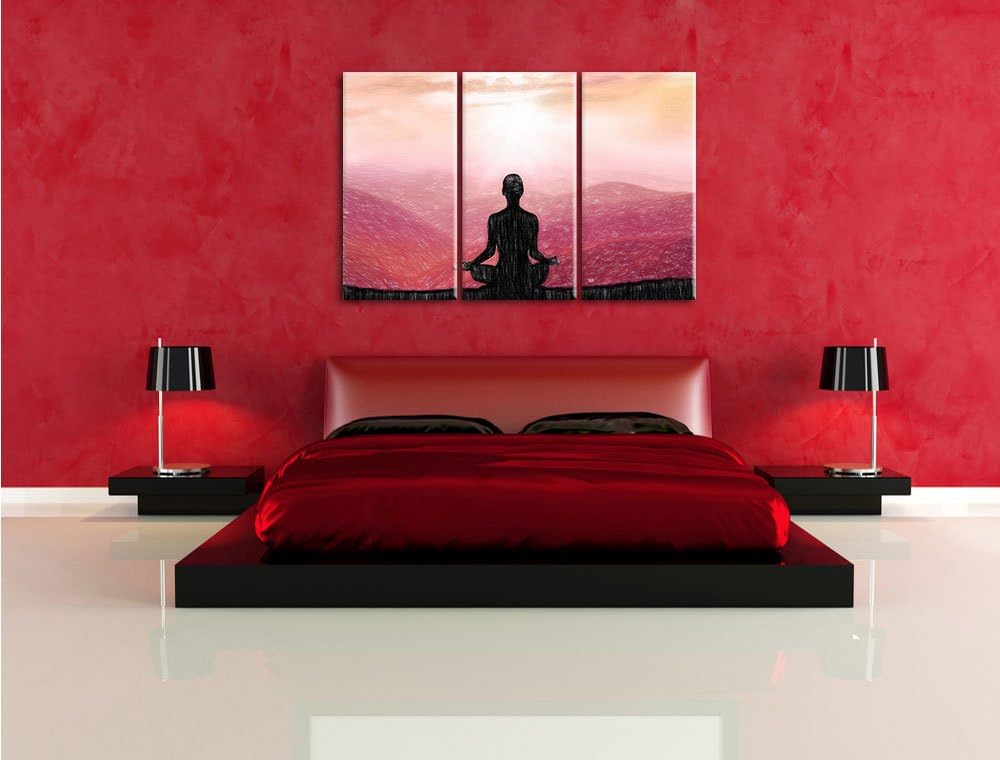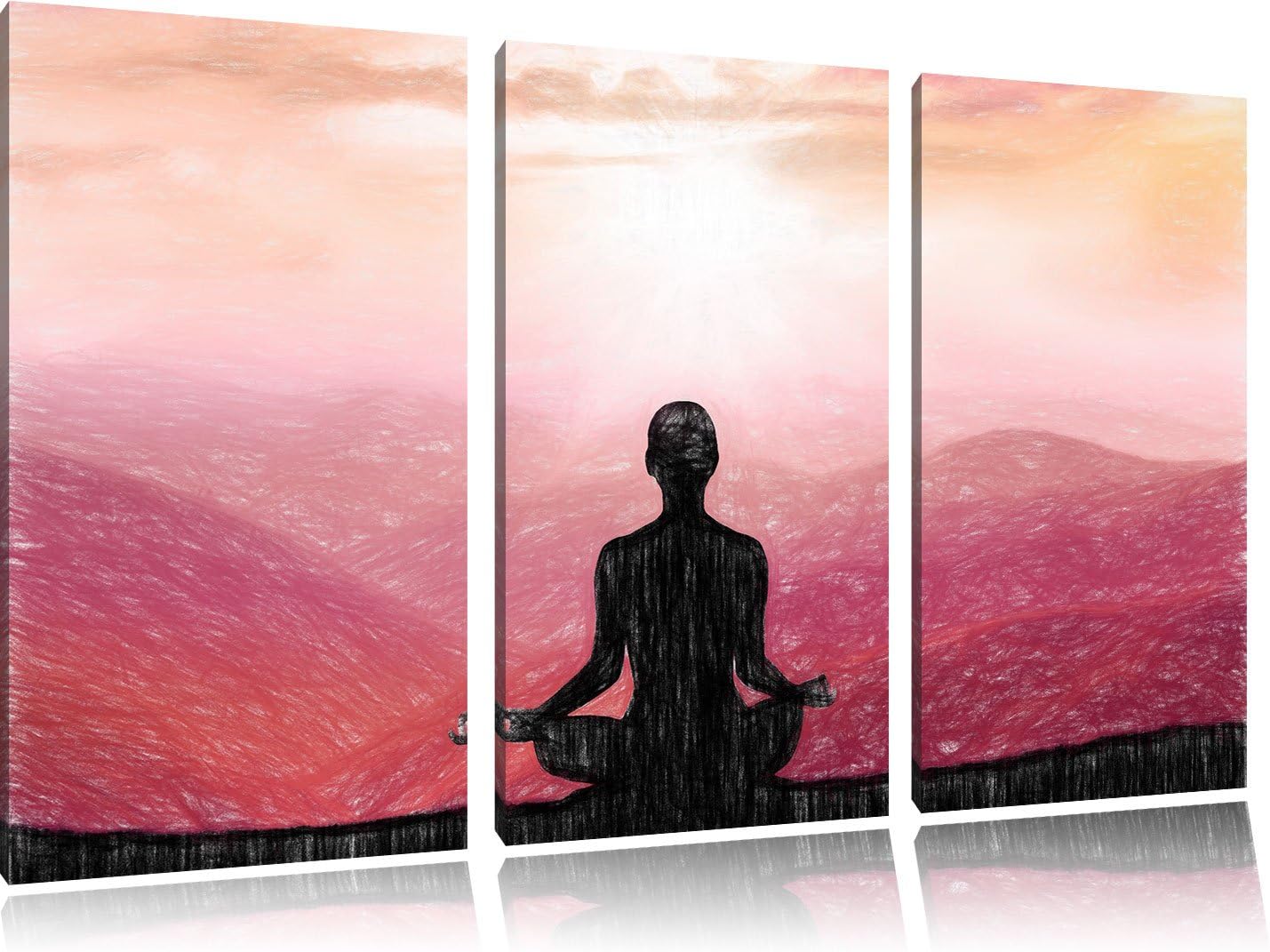 Pixxprint Meditierender Mensch in den Bergen Kunst Buntstift Effekt 3-Teiler Leinwandbild 120x80 Bil