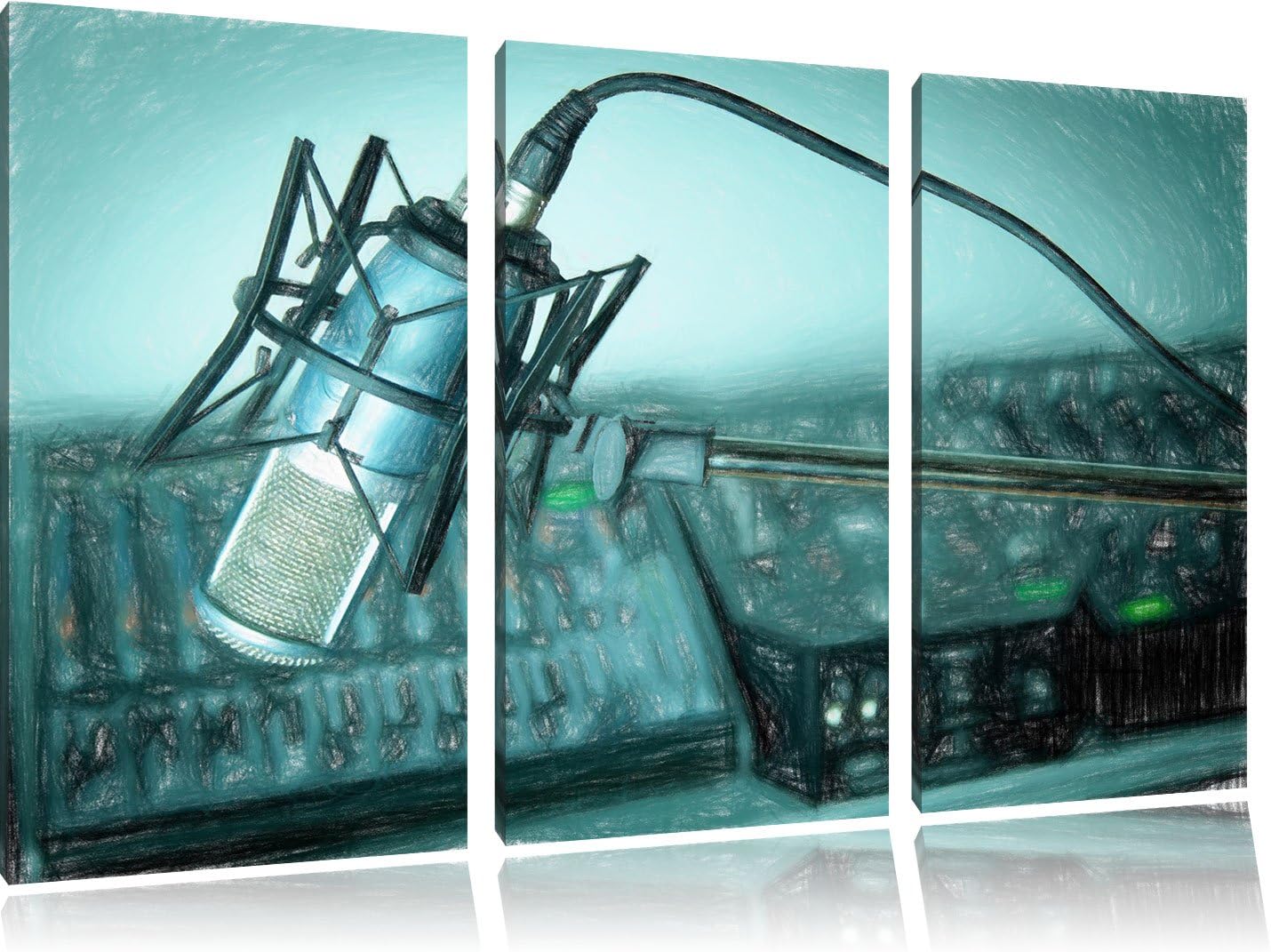 Pixxprint Mikrofon mit Musikanlagen als Leinwandbild/Grösse: 3 Teilig (120x80) cm/Wandbild/Kunstdruc