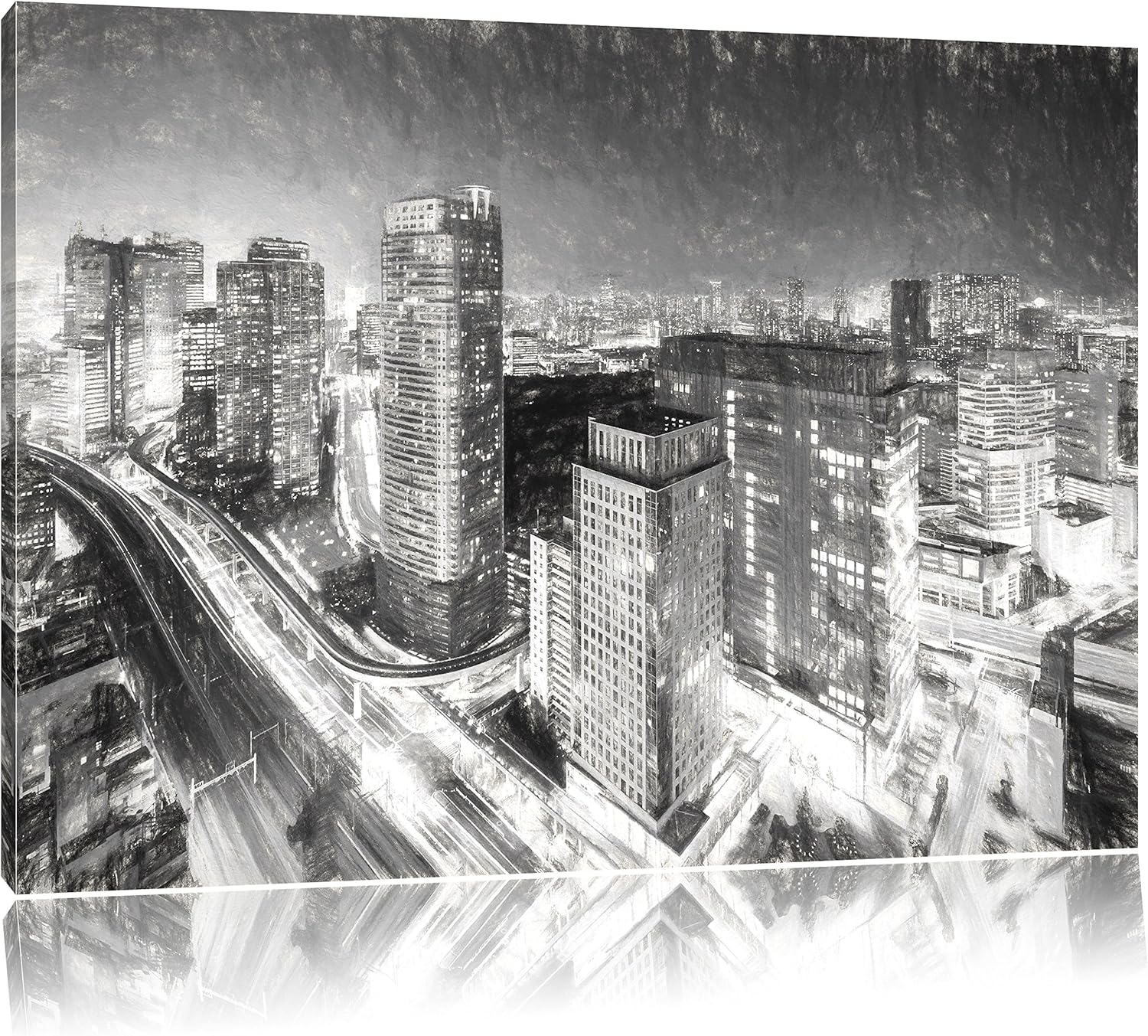 Pixxprint Moderne Architektur in Tokio / 100x70cm Leinwandbild bespannt auf Holzrahmen/Wandbild Kuns