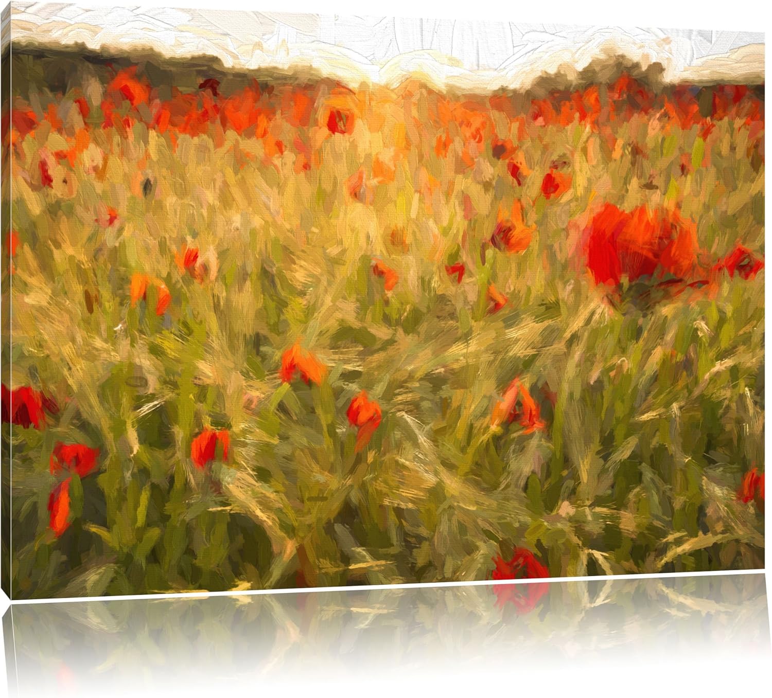 Pixxprint Mohnfeld bei Sonnenuntergang als Leinwandbild/Grösse: 100x70 cm/Wandbild/Kunstdruck/fertig