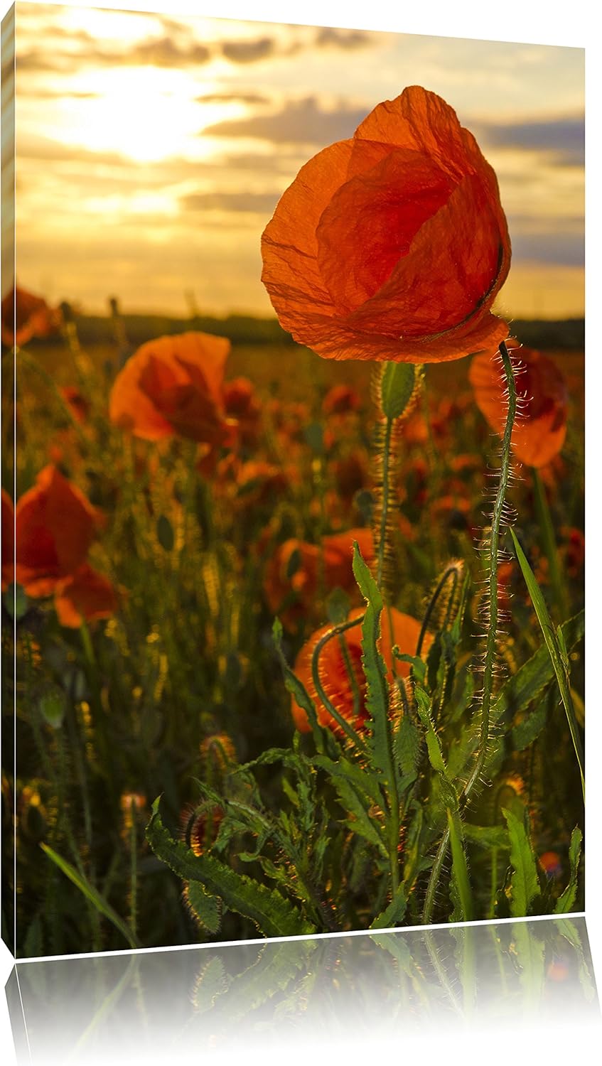 Pixxprint Mohnfeld, Format: 100x70 auf Leinwand, XXL riesige Bilder fertig gerahmt mit Keilrahmen, K