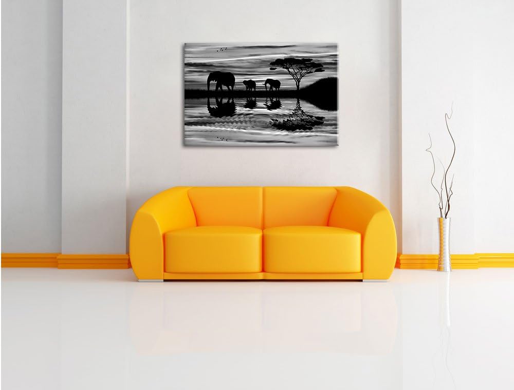 Pixxprint Monocrome, Afrika Elefant in Sonnenschein, Format: 100x70 auf Leinwand, 100x70