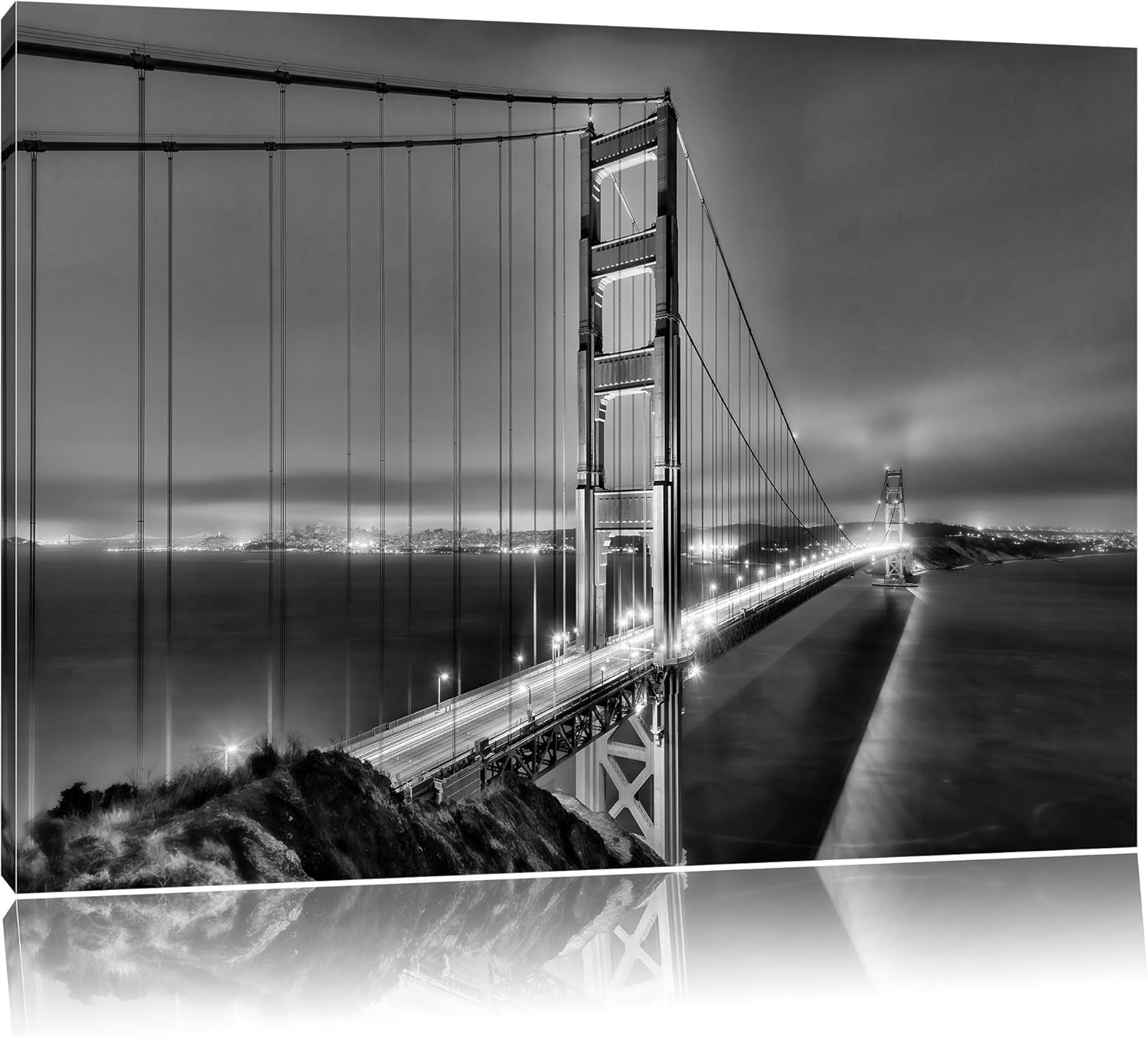 Pixxprint Monocrome, Golden Gate Bridge bei Nacht in San Francisco, Format: 100x70 auf Leinwand, XXL