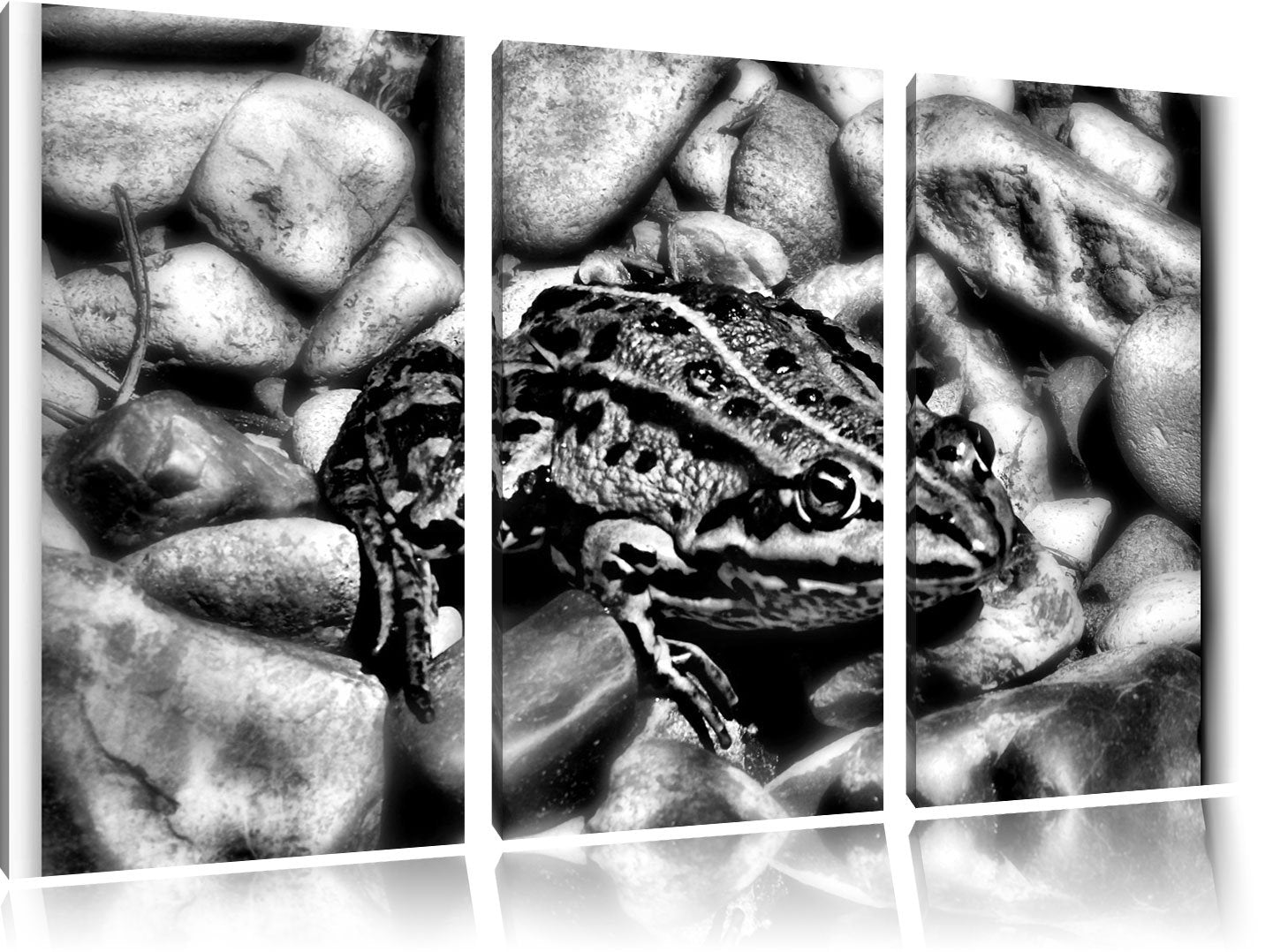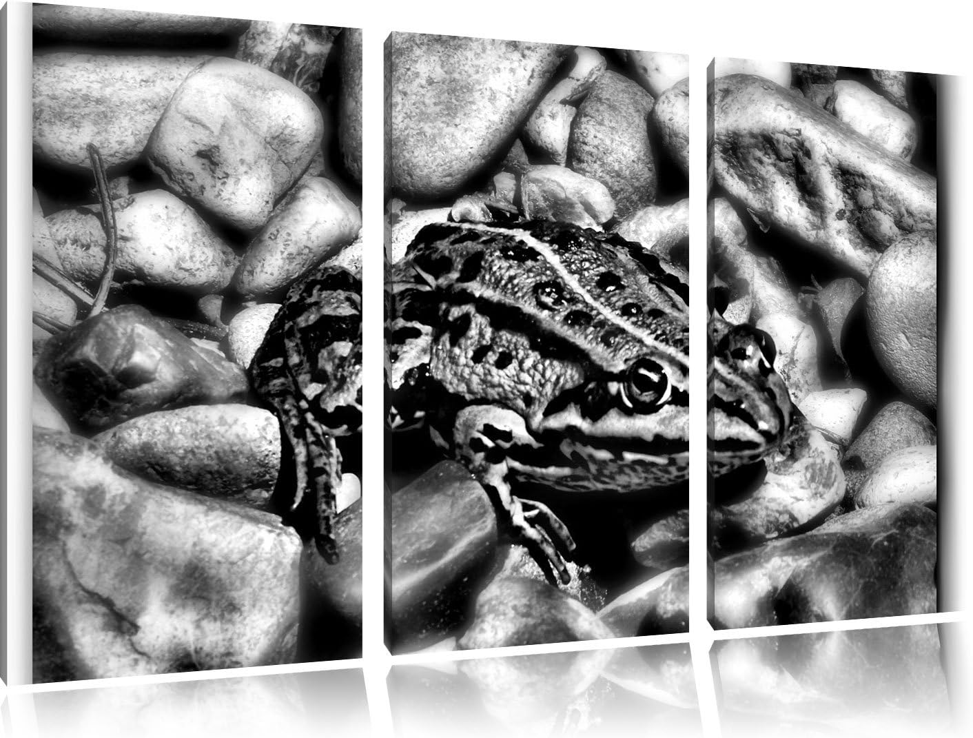 Pixxprint Monocrome, grüne Kröte in Steinbett 3-Teiler Leinwandbild 120x80 Bild auf Leinwand