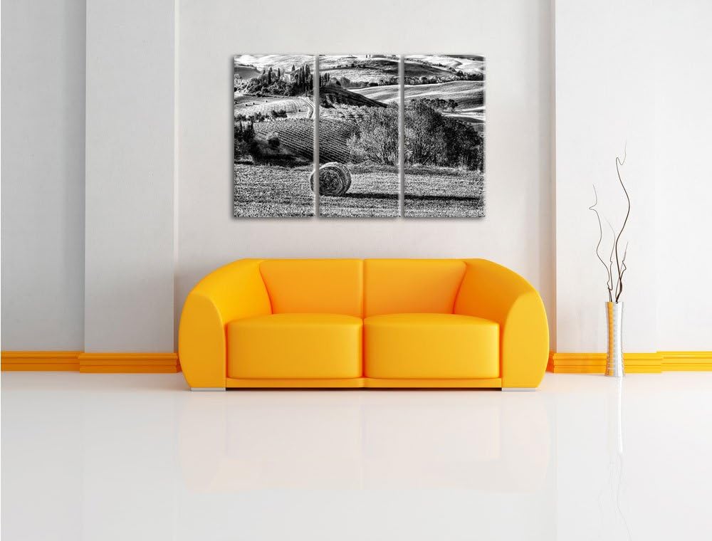 Pixxprint Monocrome, Italienische Toskana Landschaft 3-Teiler Leinwandbild 120x80 Bild auf Leinwand