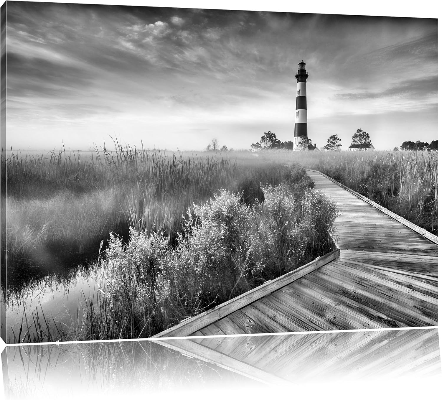Pixxprint Monocrome, Leuchtturm im Nebel, Format: 100x70 auf Leinwand, 100x70