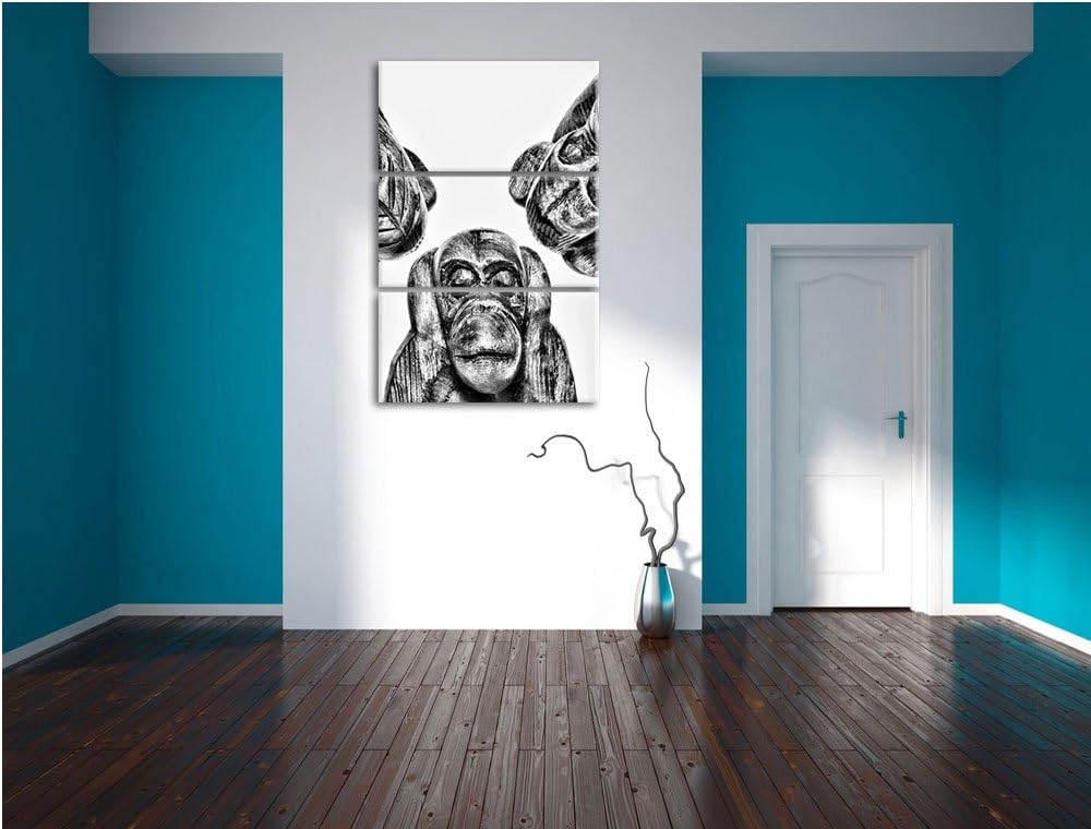 Pixxprint Monocrome, Nichts hören, Nichts sehen, Nichts Sagen, Skelette 3-Teiler Leinwandbild 120x80
