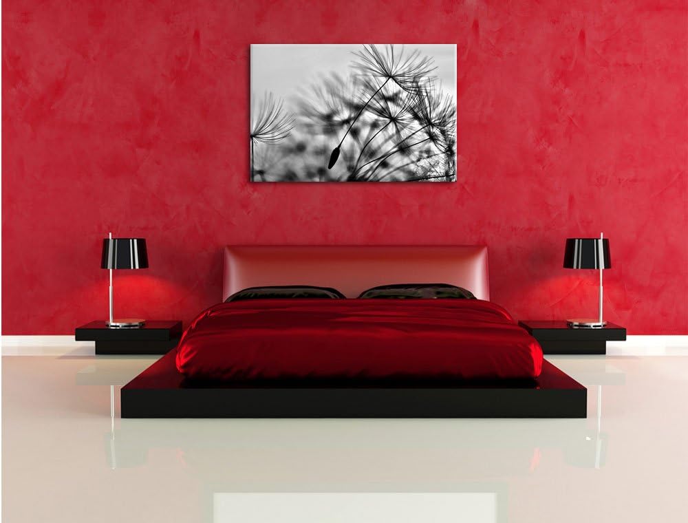Pixxprint Monocrome, Pusteblumen mit Tautropfen, Format: 100x70 auf Leinwand, riesige Bilder fertig