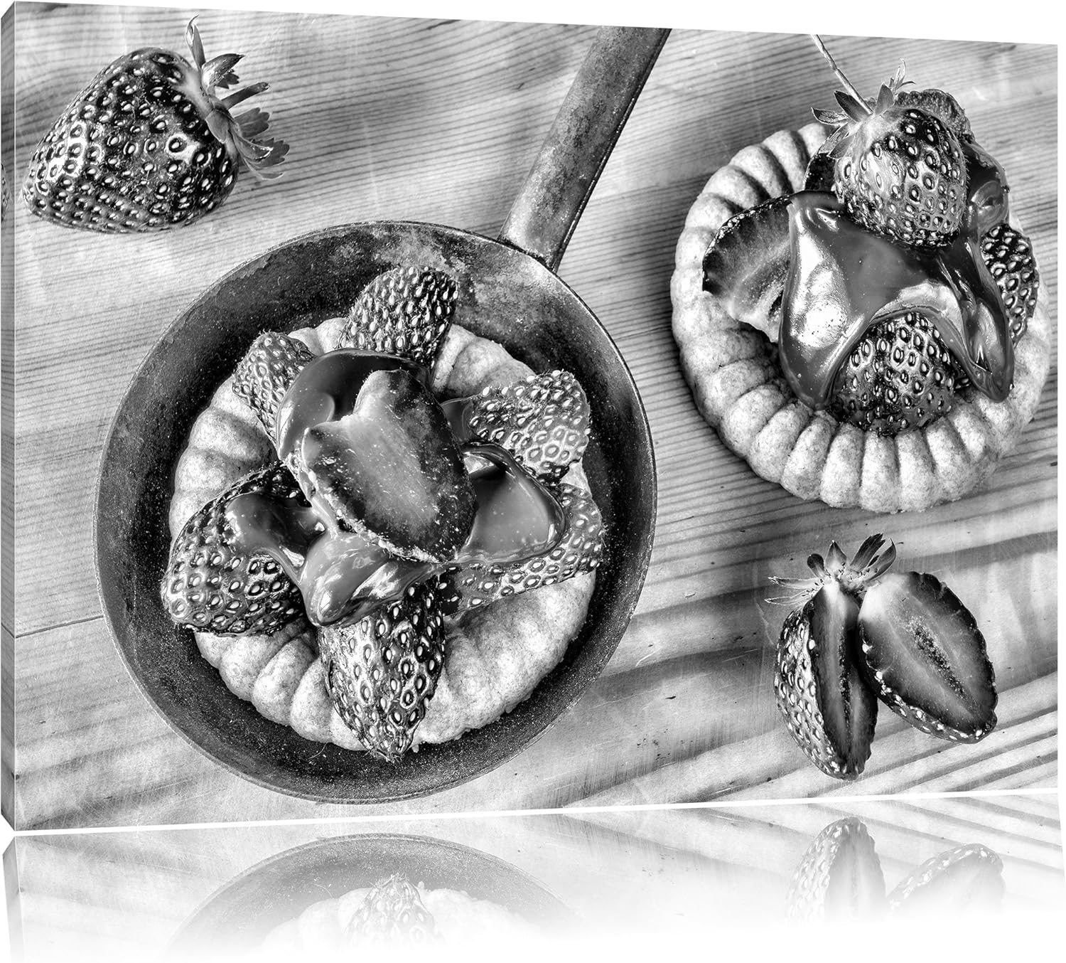 Pixxprint Monocrome, Süsse Erdbeertörtchen, Format: 100x70 auf Leinwand, riesige Bilder fertig gerah