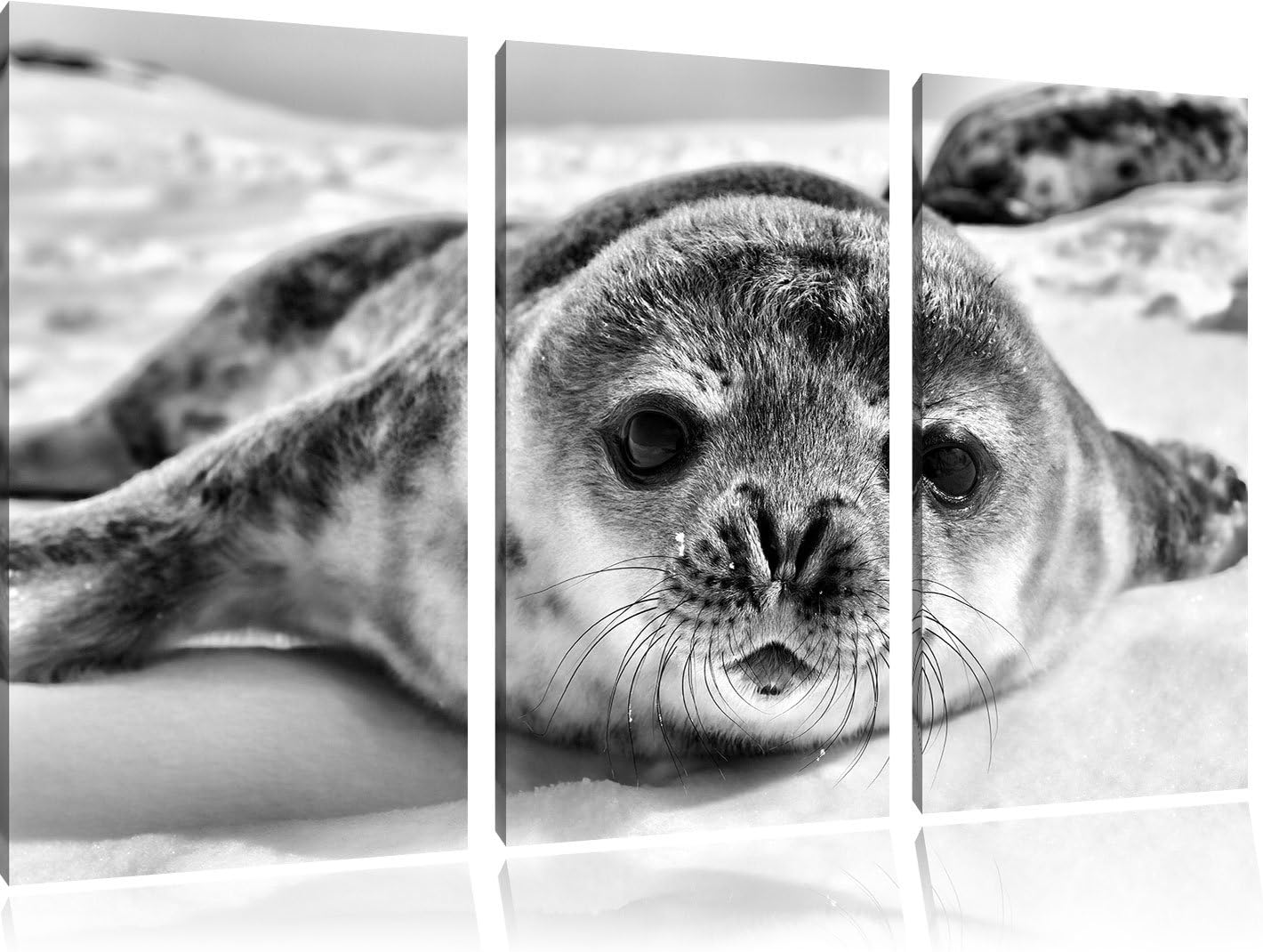 Pixxprint Monocrome, Süsses Robben Baby 3-Teiler Leinwandbild 120x80 Bild auf Leinwand