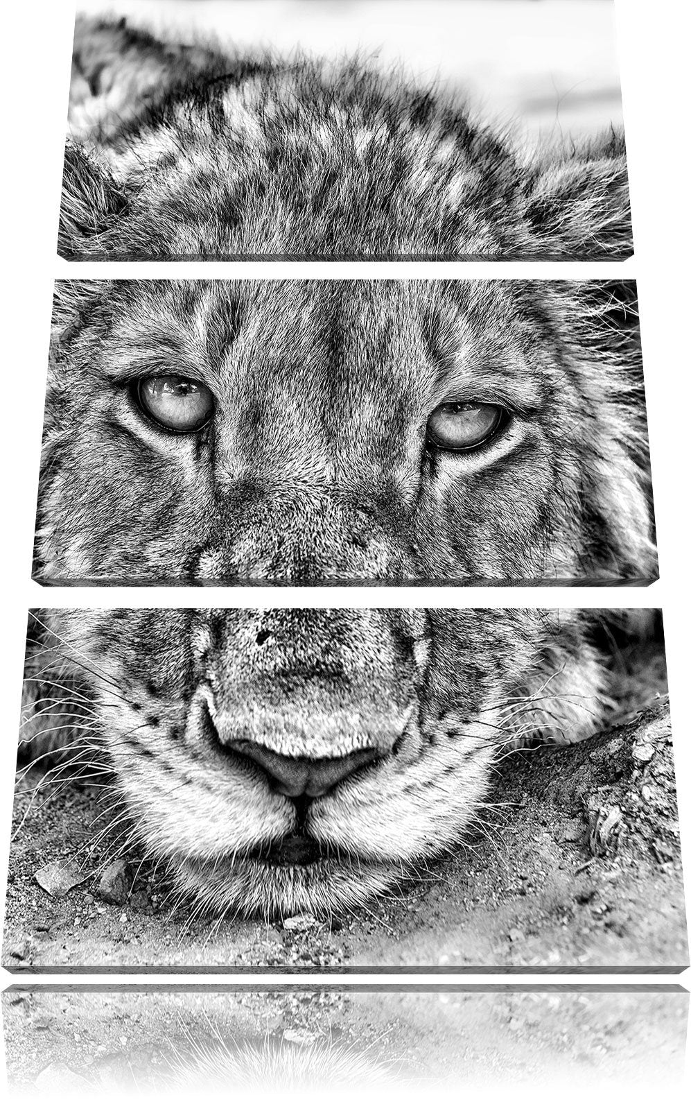 Pixxprint Monocrome, wachsame Löwin 3-Teiler Leinwandbild 120x80 Bild auf Leinwand