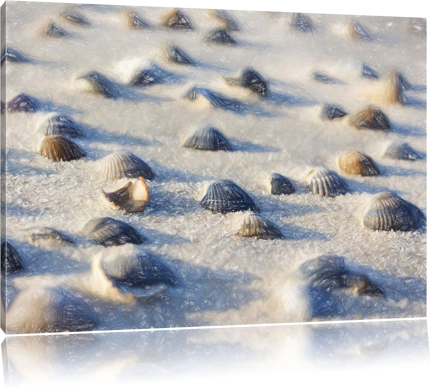 Pixxprint Muscheln im Sand als Leinwandbild/Grösse: 100x70 cm/Wandbild/Kunstdruck/fertig bespannt, 1