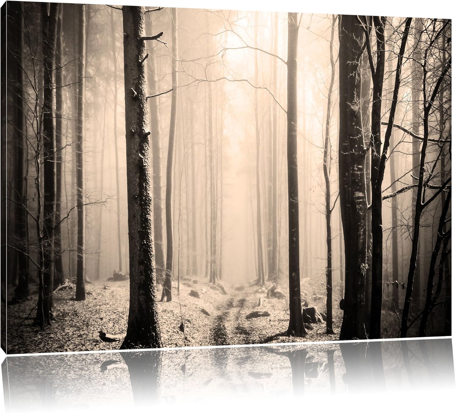 Pixxprint Mystischer Wald Schwarz/Weiss, Format: 100x70 auf Leinwand, 100x70