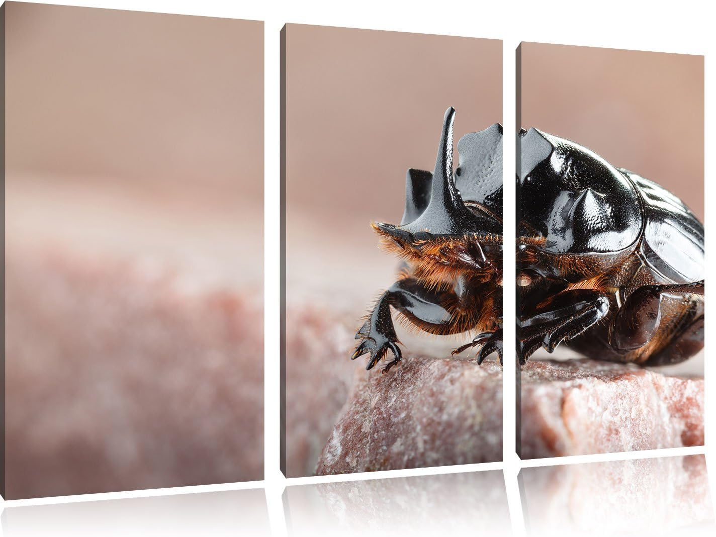 Pixxprint Nashornkäfer Porträt / 3-Teilig/Gesamtmass 120cm Leinwandbild bespannt auf Holzrahmen/Wand