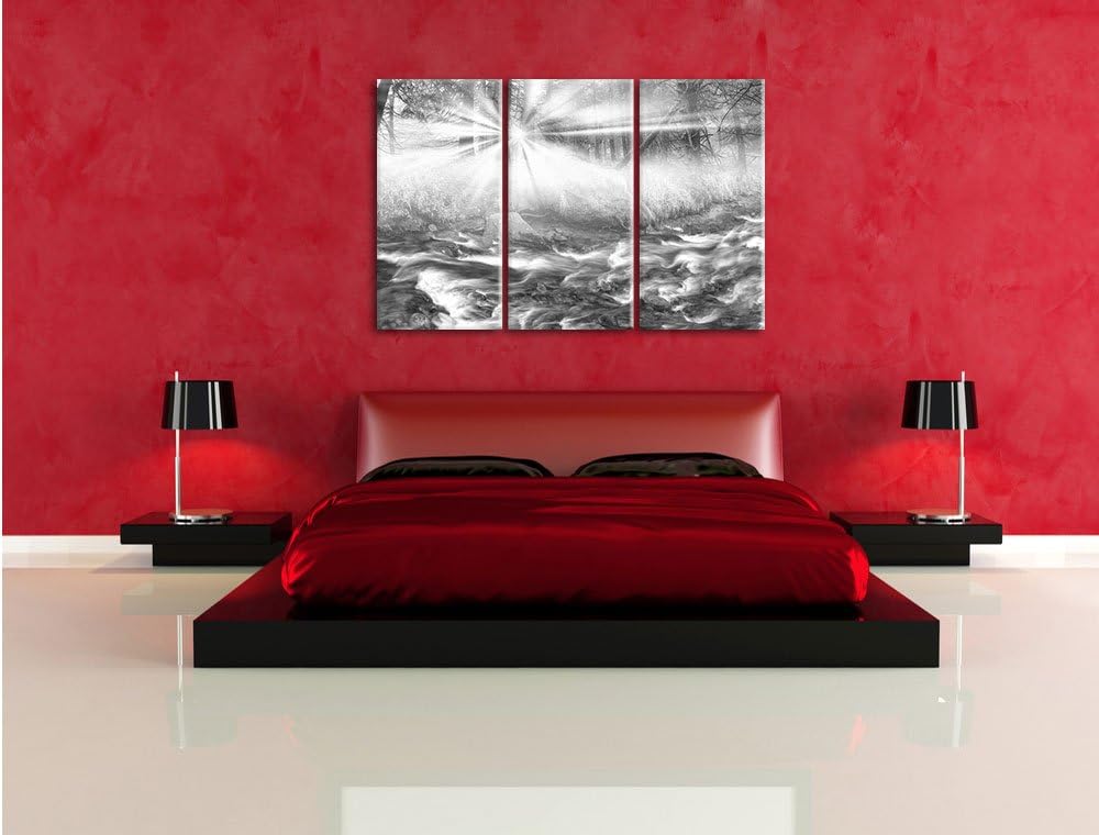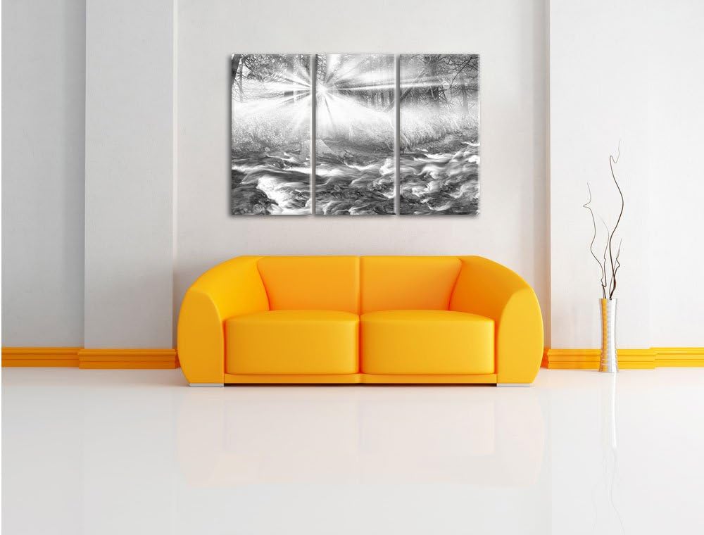 Pixxprint Nebeldickicht im Wald / 3-Teilig/Gesamtmass 120cm Leinwandbild bespannt auf Holzrahmen/Wan