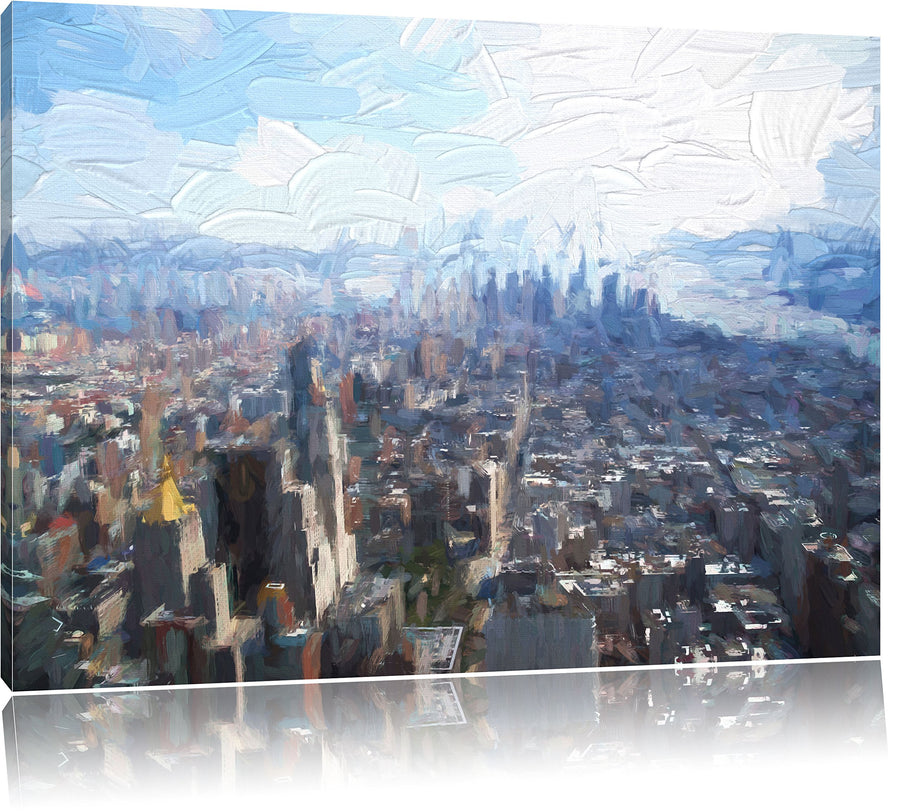 Pixxprint New York City Panorama Kunst Pinsel Effekt, Format: 100x70 auf Leinwand, XXL riesige Bilde
