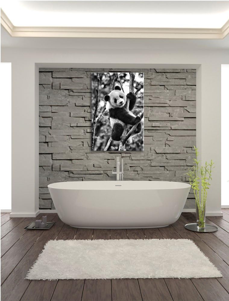 Pixxprint niedlicher Pandabär auf Baum als Leinwandbild/Grösse: 100x70 cm/Wandbild/Kunstdruck/fertig