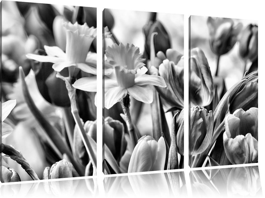 Pixxprint Osterglocken und Tulpen als Leinwandbild/Grösse: 3 Teilig (120x80) cm/Wandbild/Kunstdruck/