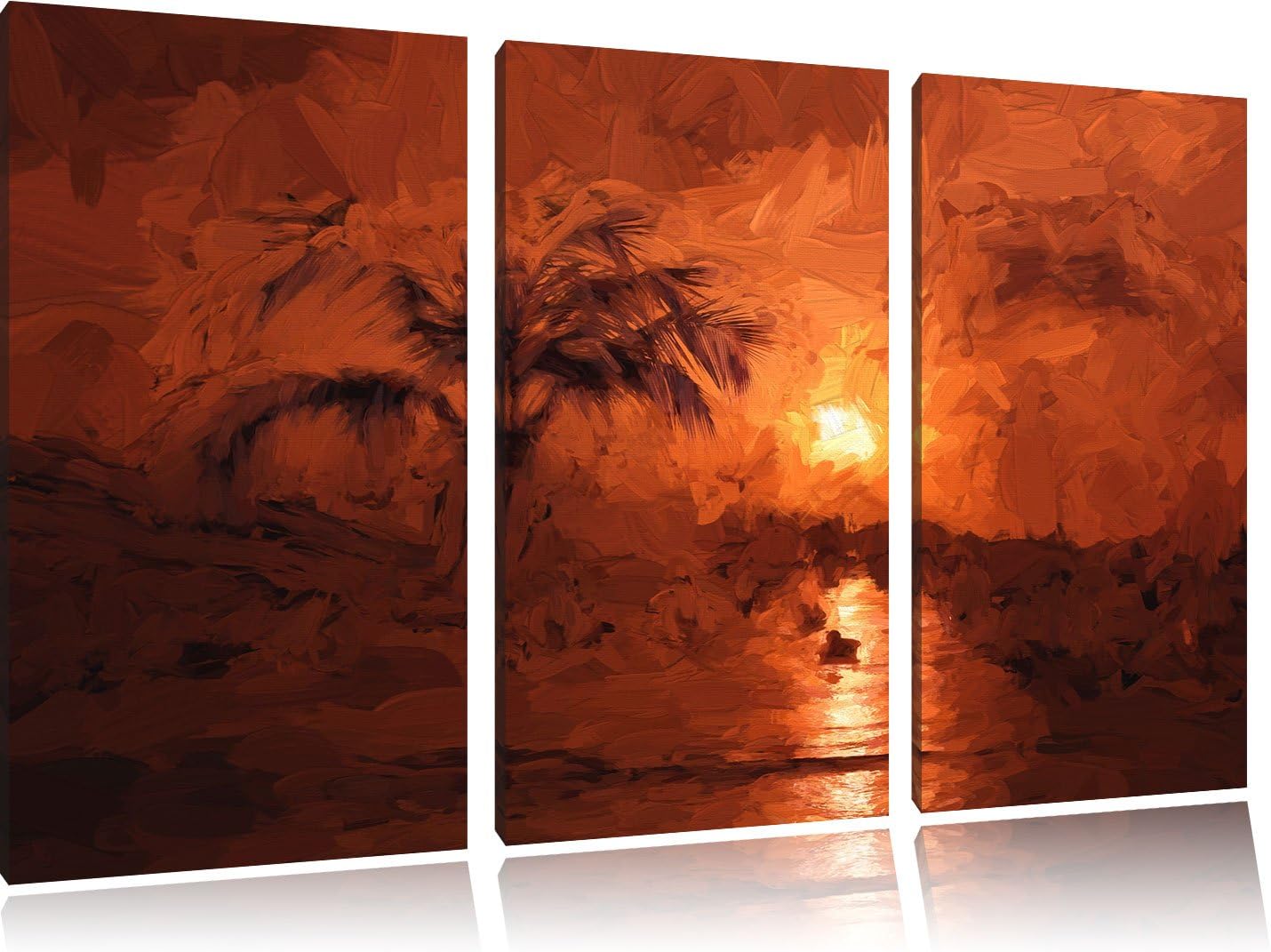 Pixxprint Palmen am Traumstrand als Leinwandbild/Grösse: 3 Teilig (120x80) cm/Wandbild/Kunstdruck/fe