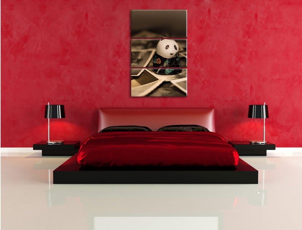 Pixxprint Panda Figur zwischen Fotografien als Leinwandbild/Grösse: 3 Teilig (120x80) cm/Wandbild/Ku