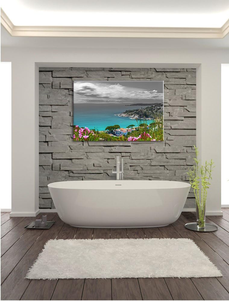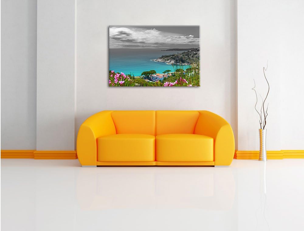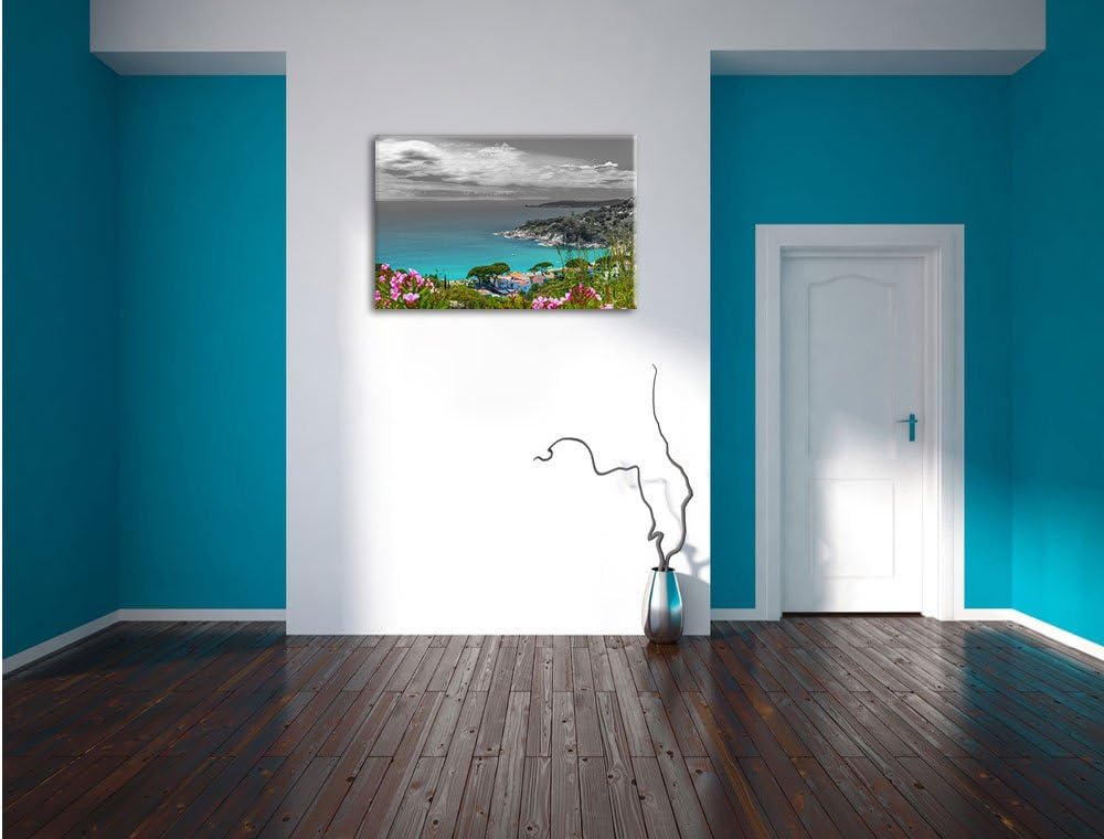 Pixxprint Panorama über die Küste Italiens an der Toskana B&W Detail, Format: 100x70 auf Leinwand, 1