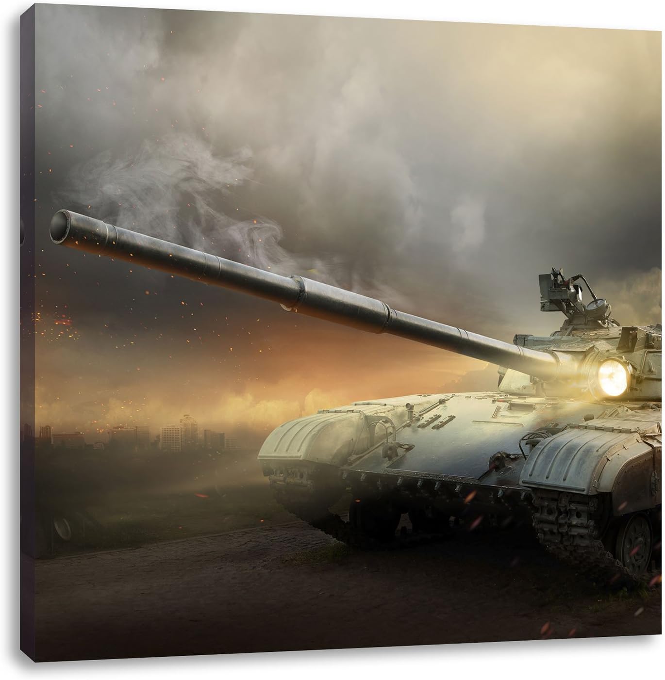 Pixxprint Panzer im Nebel 70x70cm Leinwandbild Wandbild Kunstdruck, 70x70