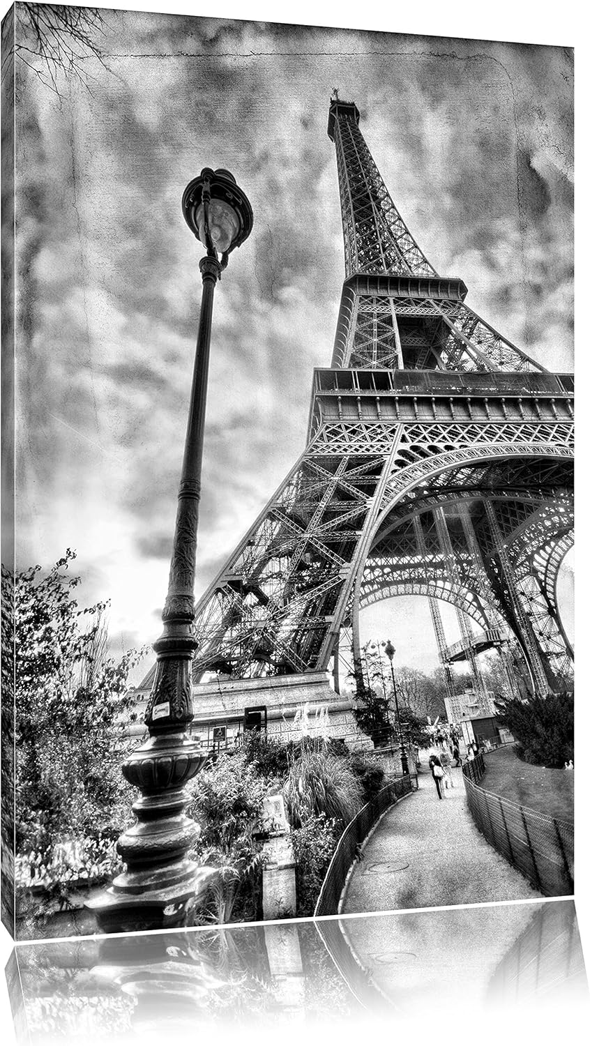 Pixxprint Pariser Eifelturm Retro / 100x70cm Leinwandbild bespannt auf Holzrahmen/Wandbild Kunstdruc