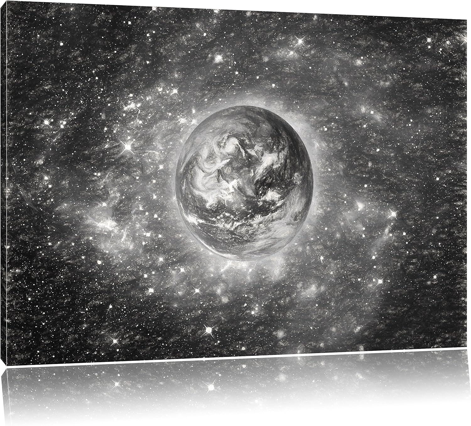 Pixxprint Planet Erde im Weltraum Kunst Kohle Effekt, Format: 100x70 auf Leinwand, 100x70