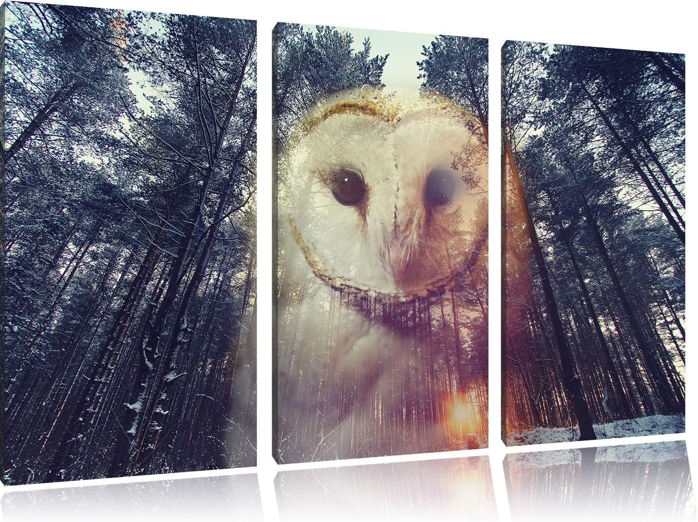Pixxprint Portrait Einer Eule als Zeichen des Waldes 3-Teiler Leinwandbild 120x80 Bild auf Leinwand