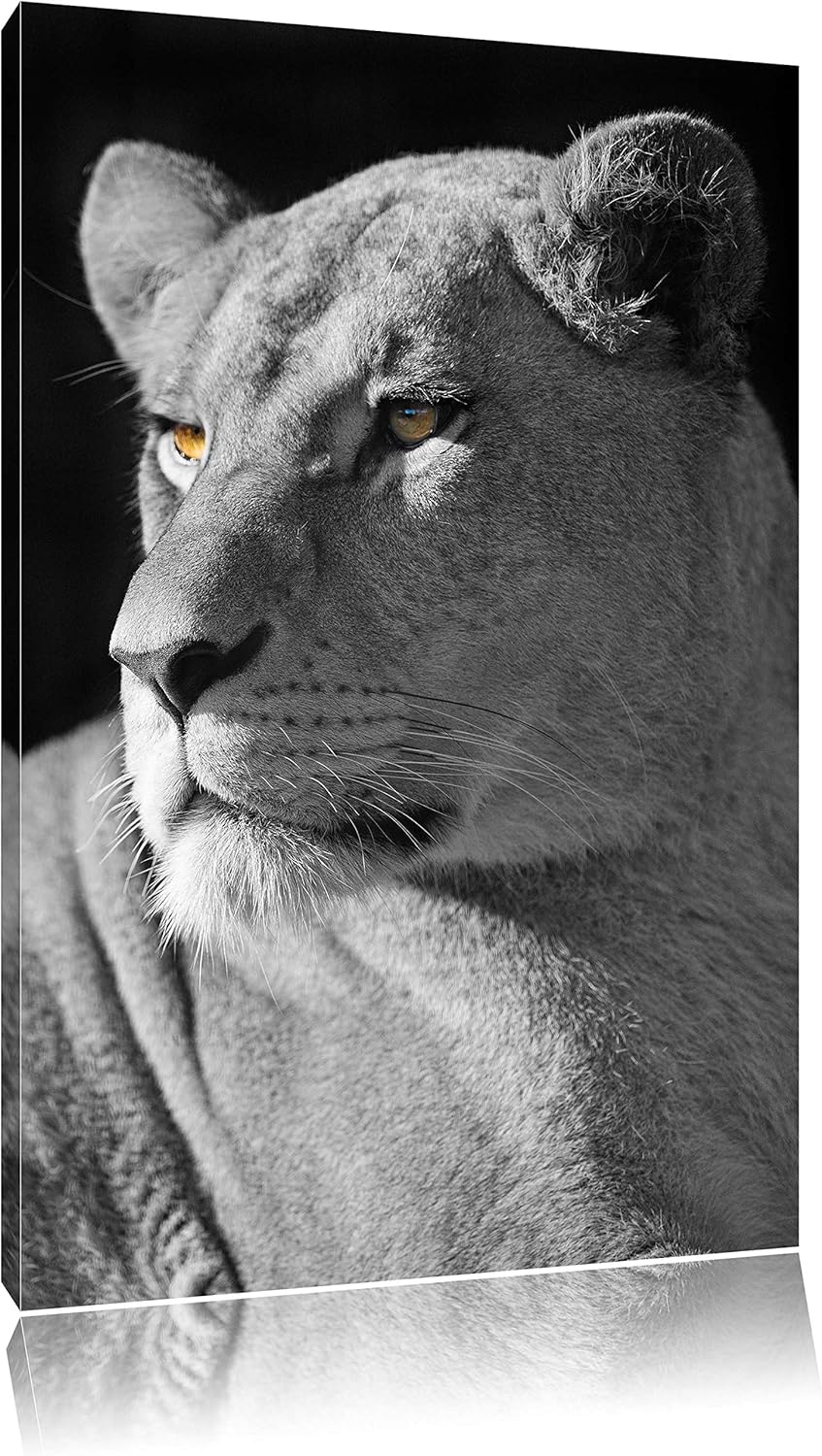 Pixxprint prächtige Löwin schwarz/weiss auf Leinwand, XXL riesige Bilder fertig gerahmt mit Keilrahm