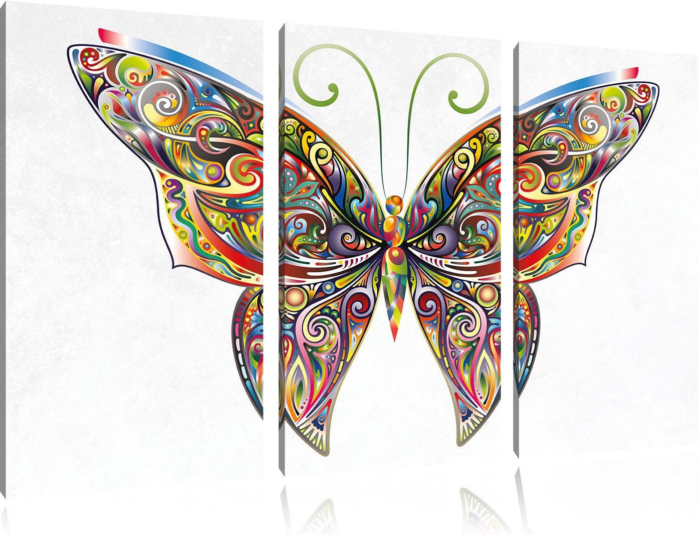 Pixxprint Prächtiger Schmetterling weiss 3-Teiler Leinwandbild 120x80 Bild auf Leinwand