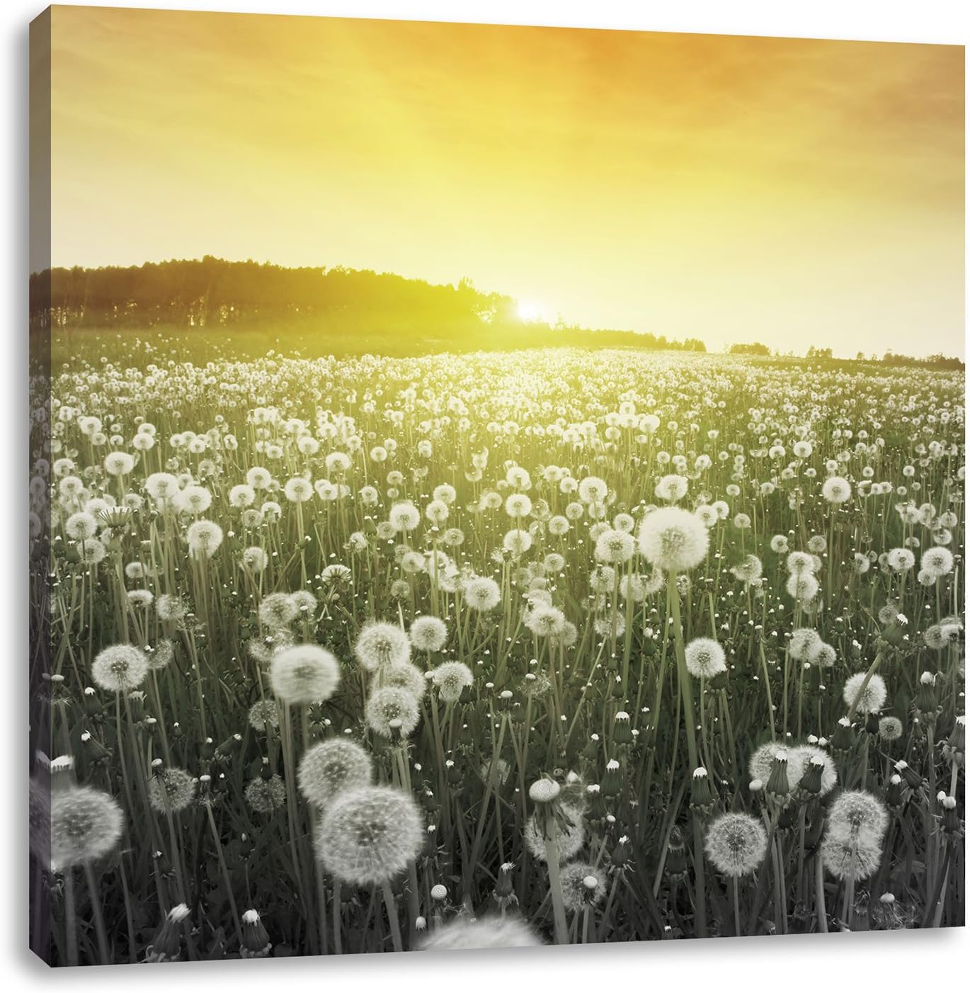 Pixxprint Pusteblumen Sonnenuntergang als Leinwandbild/Grösse: 70x70 cm/Wandbild/Kunstdruck/fertig b