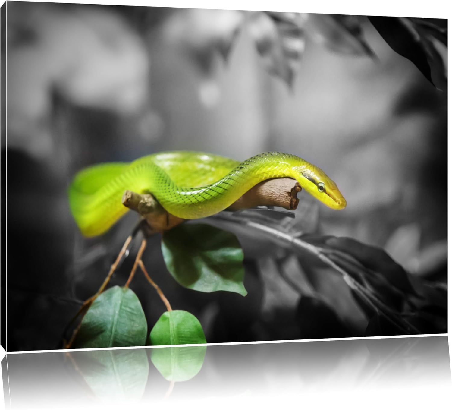 Pixxprint Raue grüne Schlange als Leinwandbild/Grösse: 100x70 / Wandbild/Kunstdruck/fertig bespannt,