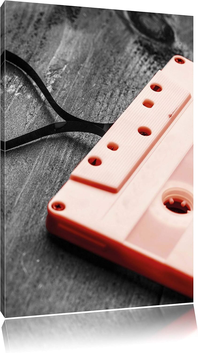 Pixxprint Retro Kasette mit Herz schwarz/weiss, Format: 80x120 auf hochkantiges Leinwand, XXL riesig